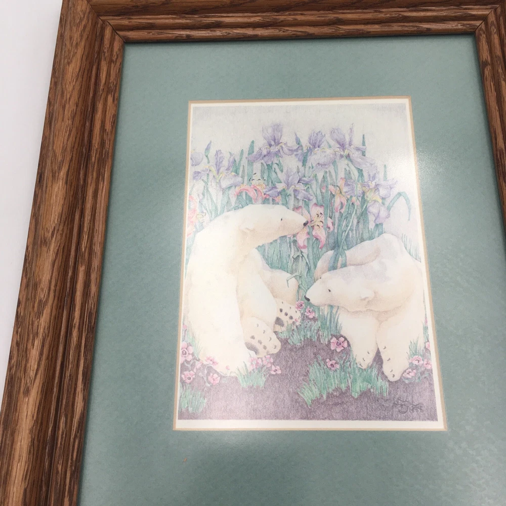 HomeSigned Print 10 X12 Vintage B Stone Bear Framed Nature Polar Floral Flowers Iris