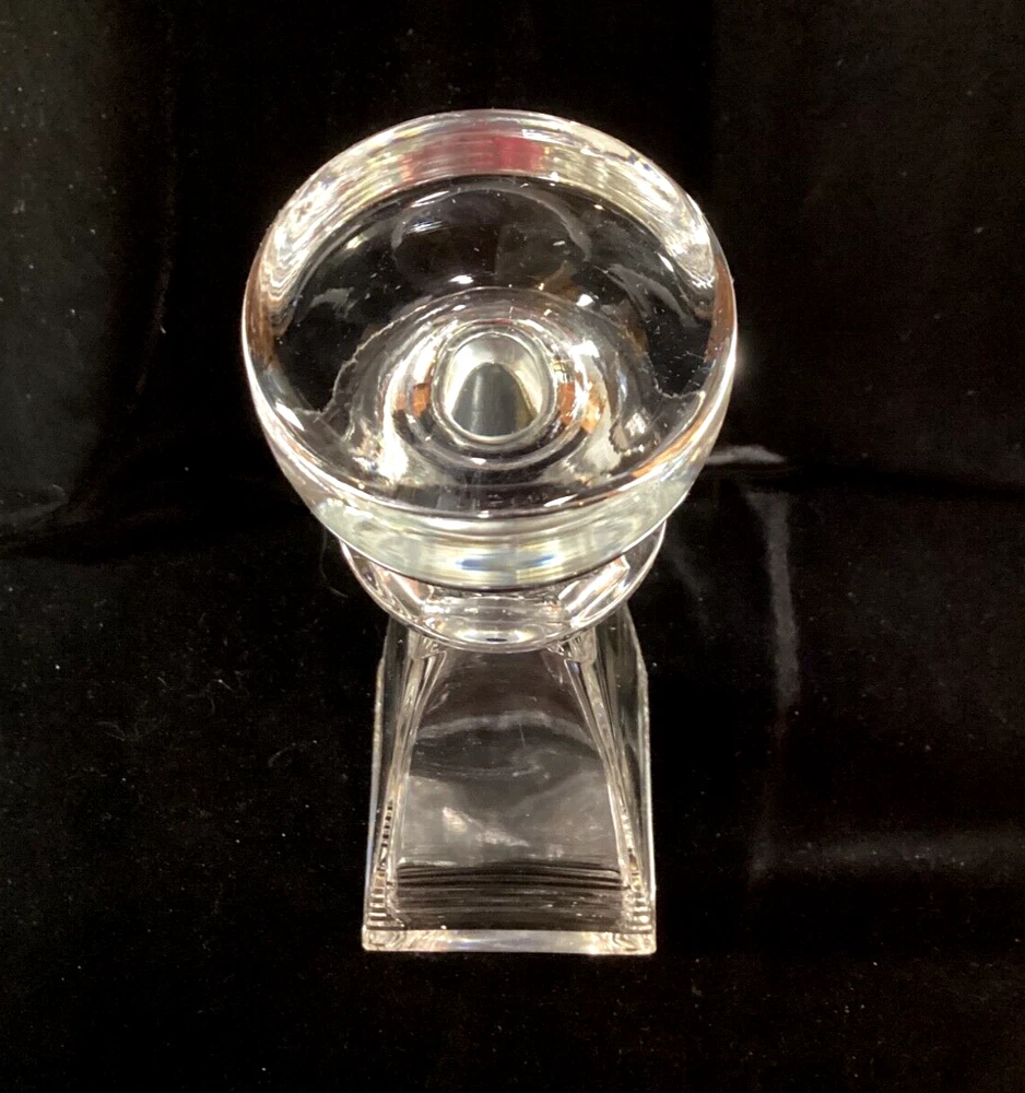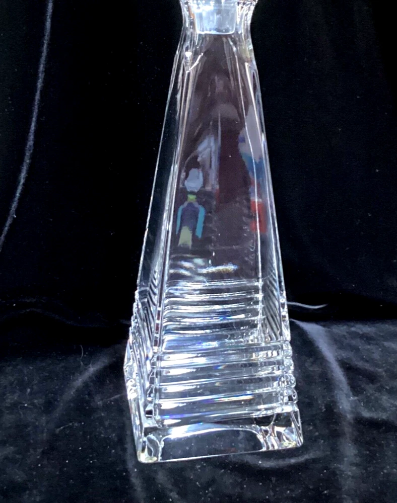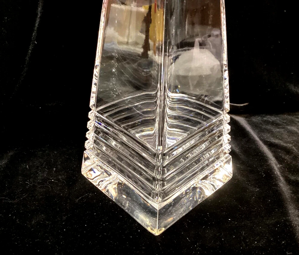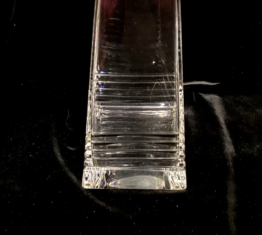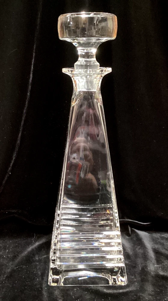Overall excellent pre owned condition with no chips, cracks, cloudiness, or wear ~ appears unused. Measures 13 1/2" tall to top of stopper. Features square design decanter with deep "step" or horizontal cuts in graduated pattern. Signed on bottom as shown in photos. Had 4 tiny rubberized feet to protect your surfaces. WILL BE PACKAGED WITH GREAT CARE TO ENSURE SAFE ARRIVAL!! Add a touch of luxury to your bar collection with this stunning Tiffany & Co Crystal Decanter. This 13" square cut decanter features a beautiful horizontal cut pattern and is made of high-quality crystal material in a clear color. The decanter comes with a lid/stopper, ensuring a secure and stylish seal. This original art glass piece is perfect for collectors and enthusiasts alike, with its vintage design and excellent production style. Whether you're using it to store your favorite liquor or as a decorative piece, this Tiffany & Co decanter is sure to impress.