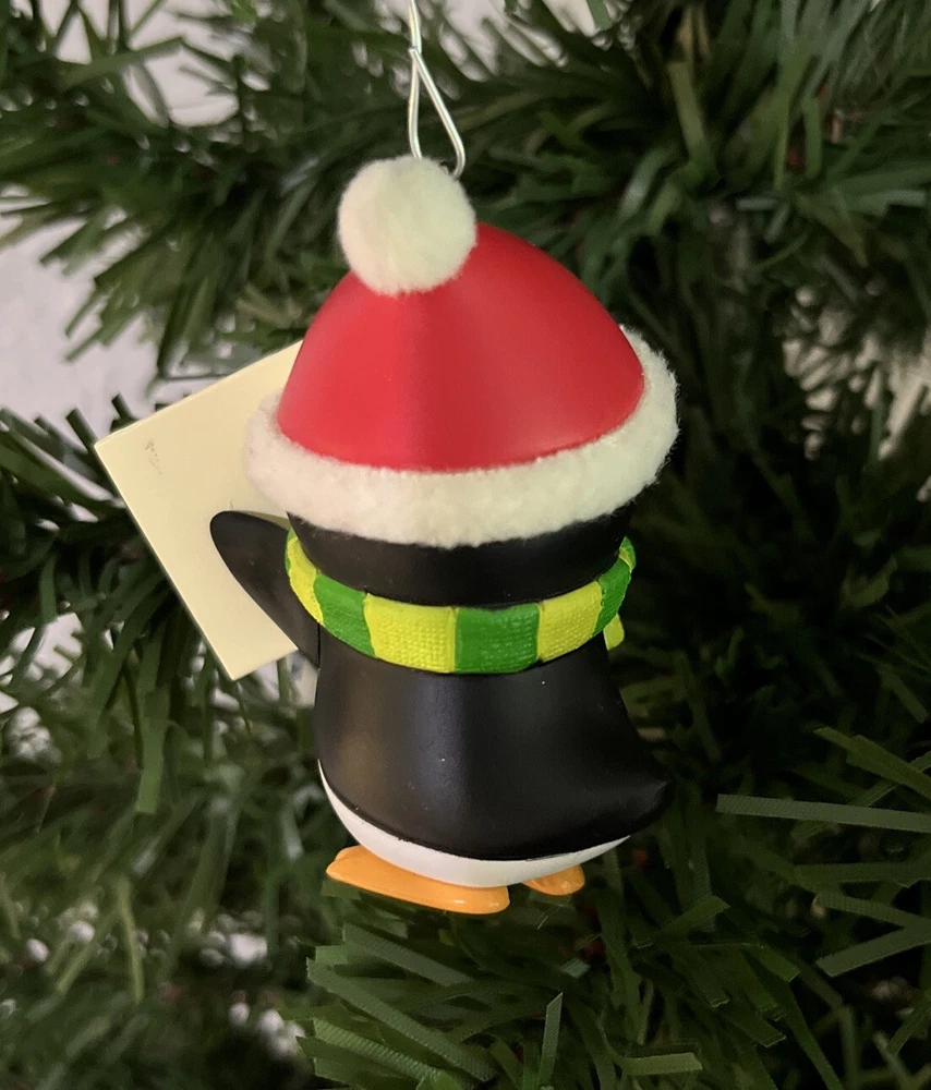 This adorable Christmas ornament features a cute penguin holding a sign that reads "Signs of the Times" from 2009. The ornament is made of durable plastic and is an original licensed reproduction from the Hallmark brand. It's perfect for any collector or fan of animals and holiday decorations. The ornament comes with a set that includes one item and is signed by the artist. Add this unique piece to your collection today! Box with minimal wear