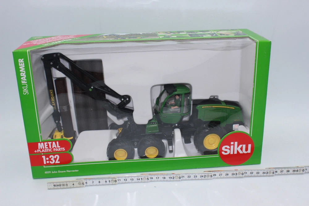 Siku 4059 John Deere Harvester 1:32 New in OVP + Tree trunks The description of this item has been automatically translated. If you have any questions, please feel free to contact us. Siku 4059 John Deere Harvester 1:32 New in original packaging + tree trunks world of models wishes you a lot of fun Visit our eBay shop There you will find other series models at top prices and thereby save shipping costs Siku 4059 John Deere Harvester 1:32 New in original packaging + tree trunks world of models wishes you a lot of fun Visit our eBay shop There you will find other series models at top prices and thereby save shipping costs Recommended products Provided by Siku 3838 John Deere 6175 R with Baler Special Model 1:32 NEW in OVP View item Siku 6736 John Deere 7290 R with Bluetooth App + Remote Control 1:32 NEW in OVP View item Siku 7071 Accessory Set Tractor Driver Fendt Claas John Deere Deutz 1:32 New OVP View item Siku 6792 John Deere 7310 + Front Loader + Bluetooth App Control 1:32 RC New OVP View item Wiking 077859 John Deere 8R 410 Tractor New in OVP 1:32 View item Siku 3661 Front Loader Attachments 1:32 NEW in OVP View item Siku 2887 Dolly SIGA Dou 1:32 NEW in OVP View item Siku 4058 Claas Jaguar 960 Chopper 1:32 NEW in OVP View item Herstellernummer 4059 Marke SIKU Farbe Grün Modifizierter Artikel Nein Besonderheiten mit OVP Besonderheiten Standmodell Angebotspaket Nein Fahrzeugmarke John Deere Material Kunststoff Material Metall Fahrzeugtyp Harvester Serie Siku Farmer Serie Maßstab 1:32 EAN 4006874040599