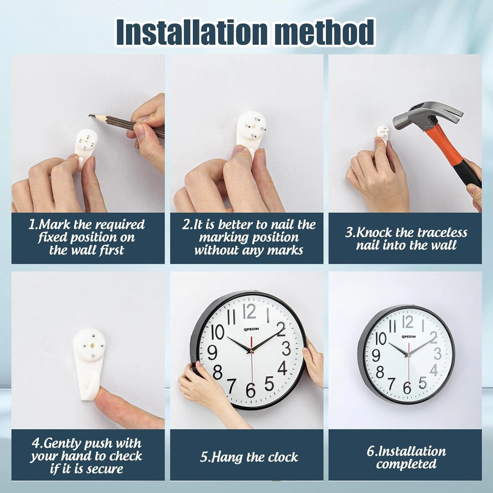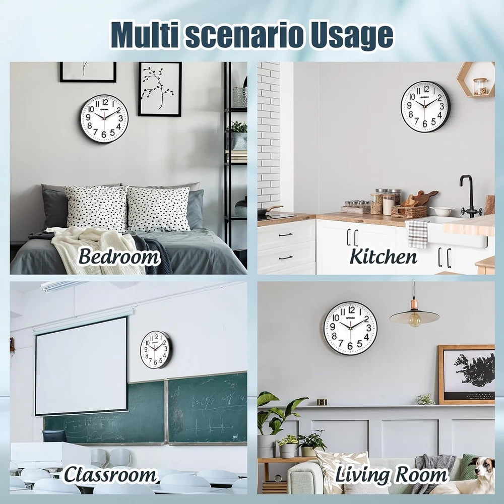 Store New Arrivals Add to Favorite View Feedback Contact Wall Clock Wall Clocks Silent Non-Ticking Battery Operated Large Easy to Read with Stereoscopic Dial Ultra-Quiet Movement Quartz for Office Classroom School Home Kitchen (10 Inches)… Description Item model number Wall Clock Style Fashionable Number of Items 1 Power Source Battery Powered Dial Color White or Cream Country of Origin China Warranty Type Lifetime Operation Mode Electrical Theme Modern Are Batteries Included Yes Room Type School Product Dimensions 10"W x 10"H Watch Movement Quartz Frame Material Metal Age Range (Description) Adult Alarm Clock No Number of Batteries 1 AA batteries required. (included) Manufacturer QPEUIM Indoor/Outdoor Usage Indoor Item Weight 8 ounces Special Feature Silent Clock Display Type Analog Mounting Type Wall Mount Clock Form Mantel Color 10 Inches Shape Round Batteries 1 AA batteries required. (included) Brand QPEUIM 【3D three-dimensional dial】Wall clocks the numbers look clearer, the hands are supported by the golden section, the wall-mounted clock is smoother and the time is more accurate. 【Ultra-quiet movement】Wall clock is equipped with an ultra-quiet movement, allowing us to sleep better at night. Don't worry about the ticking sound of the clock anymore. 【Clear Dial】Wall clocks, The dial of the wall clock is simple and the numbers are clear, and the time can be clearly seen anywhere in the room, which makes our life more fulfilling. 【Fashionable Wall Clock】 Wall clock is designed in a Fashionable style and can be placed on the desktop or in the room. It is also a very good handicraft decoration. Hurry up, we deserve it. 【Package】Free replacement if damaged. The wall clock package has batteries in it, out of the box, don't buy batteries again. Our products provide 3 years of after-sales service. If you encounter any problems, please contact us in time, and solutions will be given within 24 hours. Don't worry about the time issue if you buy it for 3 years at a time, if you encounter quality problems, you will replace it with a new one. Product Description SIMPLE FASHION WALL CLOCK SILENT SIMPLE WALL CLOCKS TWO SIZES FOR YOUR CHOICE! Make your life easy with the 10 12 inch wall clock! The modern design of the wall clock allows you to see the time at a glance from a distance. The modern design wall clock blends in with various furniture, and different coloured wallpapers, adding a warmth to your home. Perfect noiseless wall clocks are suitable for various occasions, such as living room, office, classroom, bedroom, bathroom, dining room, study room, kitchen, conference room and so on. ABOUT US We offer the best prices around on high quality products. Our E-store includes media such as books, movies, music and games while offering electronics, toys, sporting apparel, clothing, tools, general home, garden items and more. SHIPPING We are always working hard to ensure your package arrives as soon as possible. Please understand that some factors like weather, high postal traffic, and the performance of shipping companies are outside of our control. We offer free shipping to the lower 48 states and ship within 2 business days of payment, usually sooner. We do not accept P.O. Boxes. Please provide a physical address. RETURNS We offer a 30-Day Return Policy on items which you are not completely satisfied with. You have the option for a full-refund or an exchange of the item. No returns are available on items shipped outside of the USA. PAYMENT We accept PayPal. CONTACT US This page content is yet to come Please ad us to your favorite seller and visit again later Thank You CUSTOMER SATISFACTION We try our very best to make sure every customer is completely satisfied. If there's a problem, message us! We're happy to help.