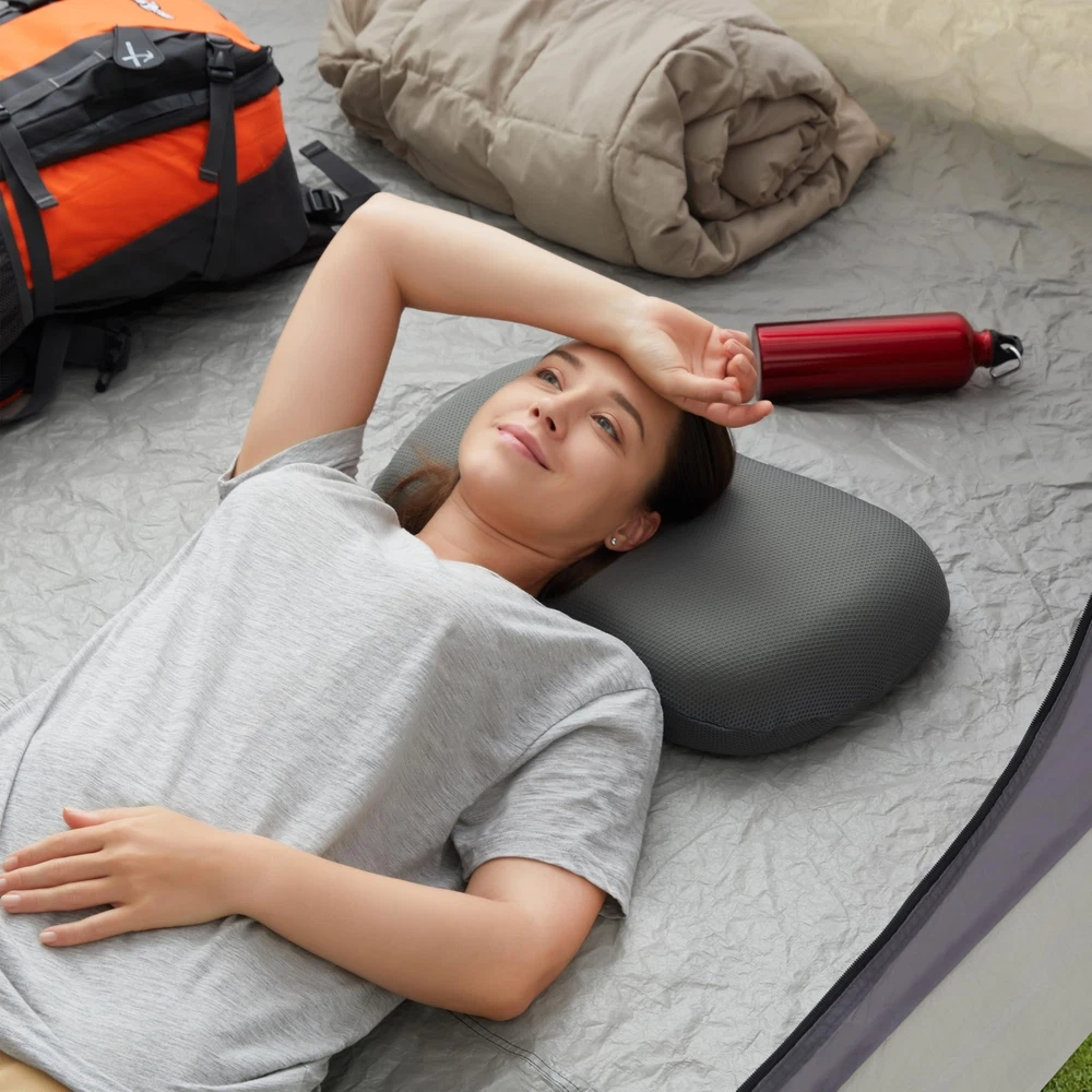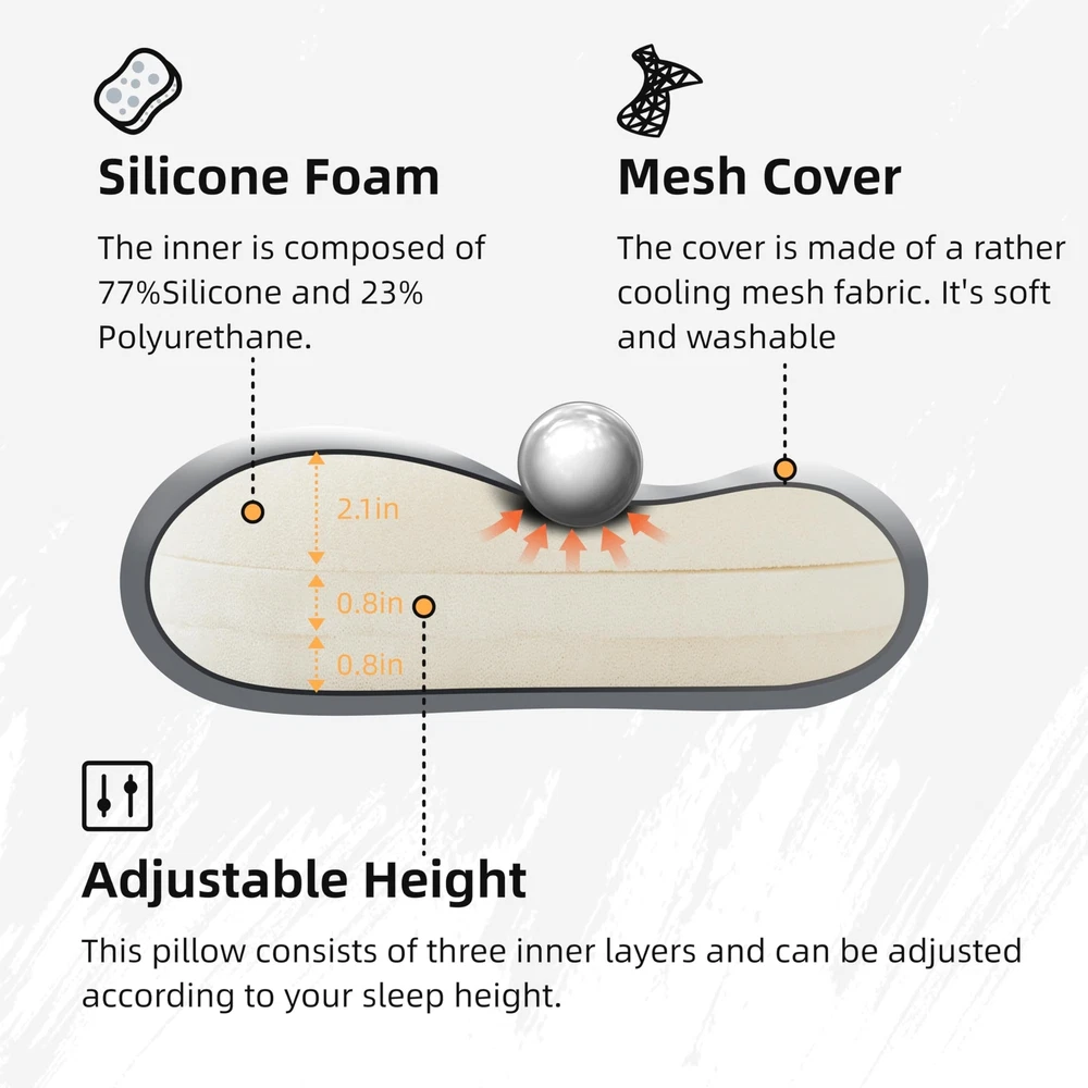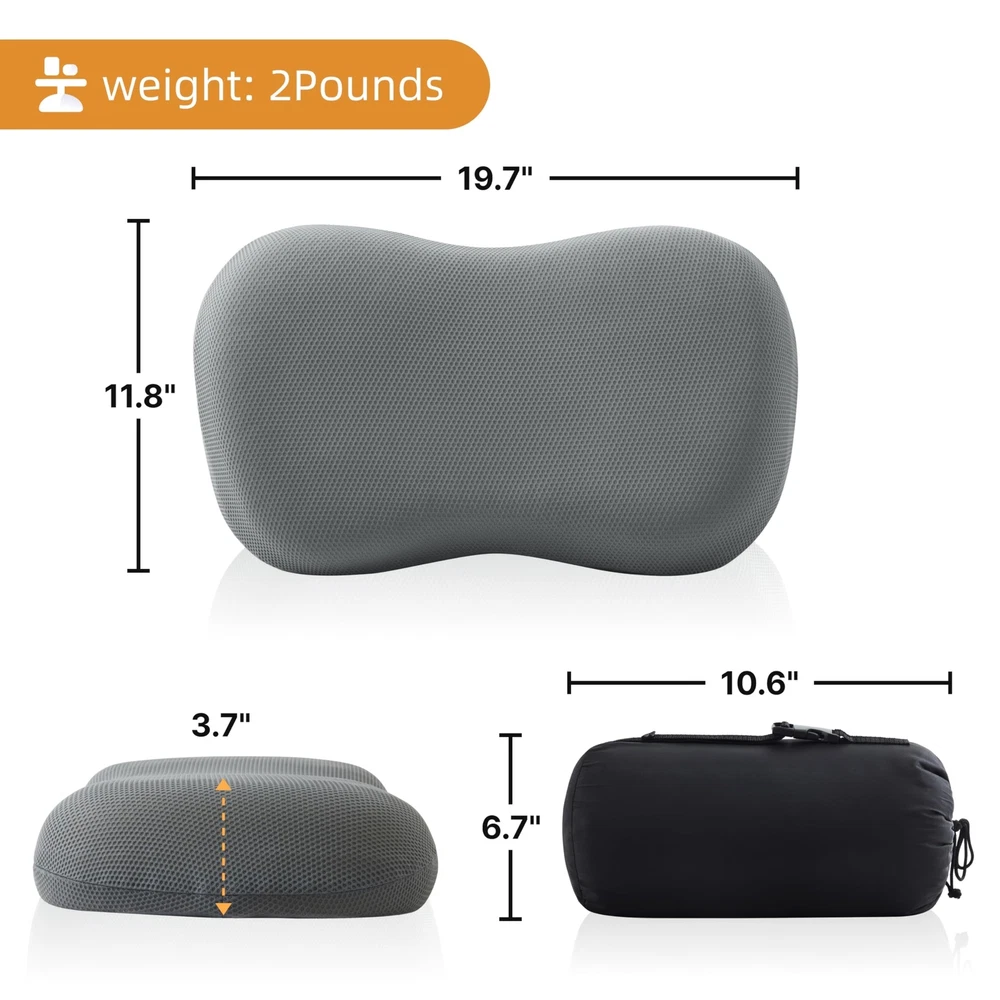 Silicone Camping Pillow,Entire Washable and Sun Dryable, Cool & Breathable Mesh Cover, Adjustable Height,Travel Pillow for Backpacking, Airplane,Car,Compressible Medium Firm Product Details Brand: Jamdok Special Feature: Cooling, Lightweight, Adjustable, Washable, Removable Cover Color: Gray Fill Material: Polyurethane (PU), Silicone Shape: Cloud Brand: Jamdok Special Feature: Cooling, Lightweight, Adjustable, Washable, Removable Cover Color: Gray Fill Material: Polyurethane (PU), Silicone Shape: Cloud Age Range (Description): Adult Recommended Uses For Product: Multi Position Sleeper Material: Silicone, Polyurethane Foam Item Firmness Description: Medium Product Care Instructions: Entire Sun Dryable, Entire Washable Number of Pieces: 1 Pattern: Plaid Item Weight: 2 Pounds Material Feature: Breathable Fabric Type: 100% Ployester Model Name: Single Manufacturer: Jamdok Product Dimensions: 19.7"L x 11.8"W Unit Count: 1.0 Count Item Weight: 2 pounds Country of Origin: China Item model number: ZT-GJ-G Date First Available: July 4, 2024 Silicone Camping PillowJamdok silicone foam camping pillow design for camping,its inner material is composed of 77%Silicone and 23% Polyurethane,so the entire pillow can be directly water washable and sun dryable,don't worry about dirty or damp pillows when traveling outdoors. Game ChangerCompared to inflatable pillows, they fit more closely to the neck, and offer comfortable support to the head. When you lie down, the height is just right for neck, and it feels comfortable with good rebound and support without feeling stuffy.The performance of silicone pillows is similar to that of memory foam pillows,but silicone pillows is 4 season pillows.Because silicone pillows do not change their structural performance due to temperature, and can remain soft in cold winter,but memory foam becomes harder at low temperatures. MultifunctionalThe travel pillow suit for backpacking, hiking, airplanes, cars, and outdoor activities. Whether you're in a tent, on a hammock,plane, boat ,camping cot or beach chair.You can also place it on the back of the seat to provide cushioning for the waist. Ultralight Portable & BreathableThe unfolded size of this pillow is 19.7 * 11.8 * 3.7in. It is rolled up and placed in a storage bag with a size of 10.6 * 6.7 * 6.7in.Its weight is only 2 pounds.We provide a waterproof storage bag with a handle that you can hang on your backpack or suitcase.You would not lose so much space by taking pillows to camp.The outer cover is made of a rather cooling mesh fabric. It's soft and washable. It can be easily removed from the pillow for care.The porous structure of the inner core makes it feel quite breathable and refreshing during sleep. Adjustable HeightThis pillow consists of three inner layers(2.1in+0.8in+0.8in) and can be adjusted according to your sleep height to choose the most comfortable pillow height.