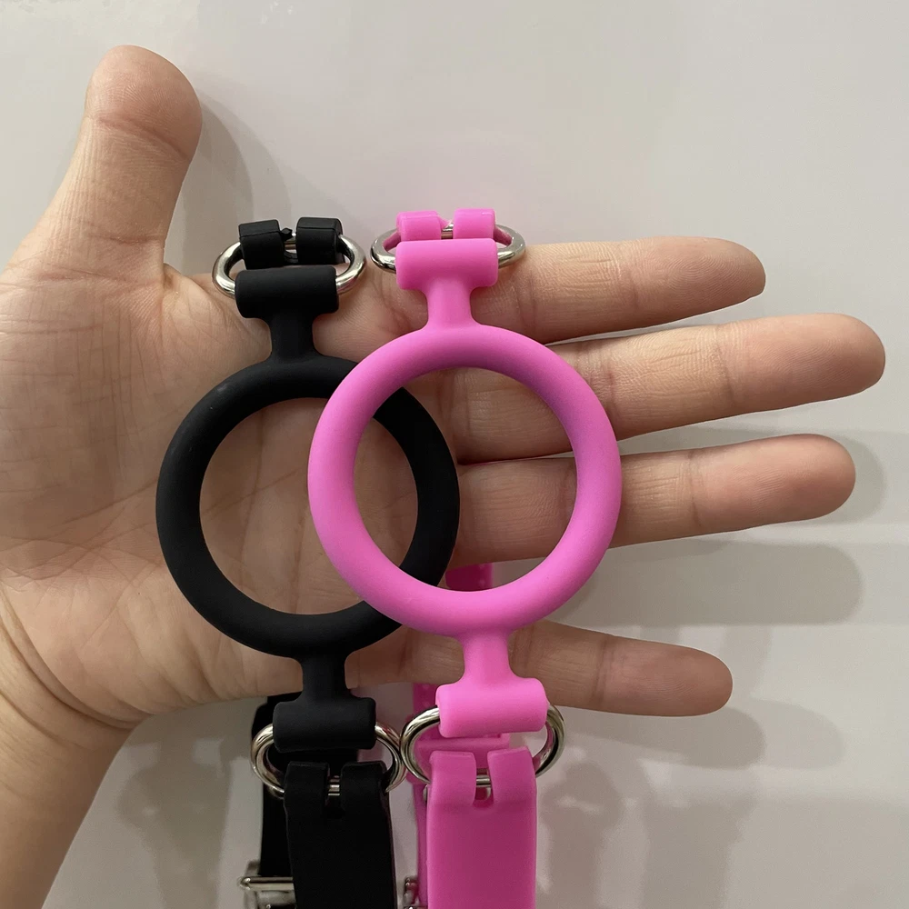 Feature: 1 00% brand new and hiqh quality Material: Silicone Color: pink/b lack Belts are adjustable. 56cm, lockable buckled Size ring : approx 5 cm Quantity: 1 piece Friendly Tips: The size is measured by hands, please allow minor error of measurement.