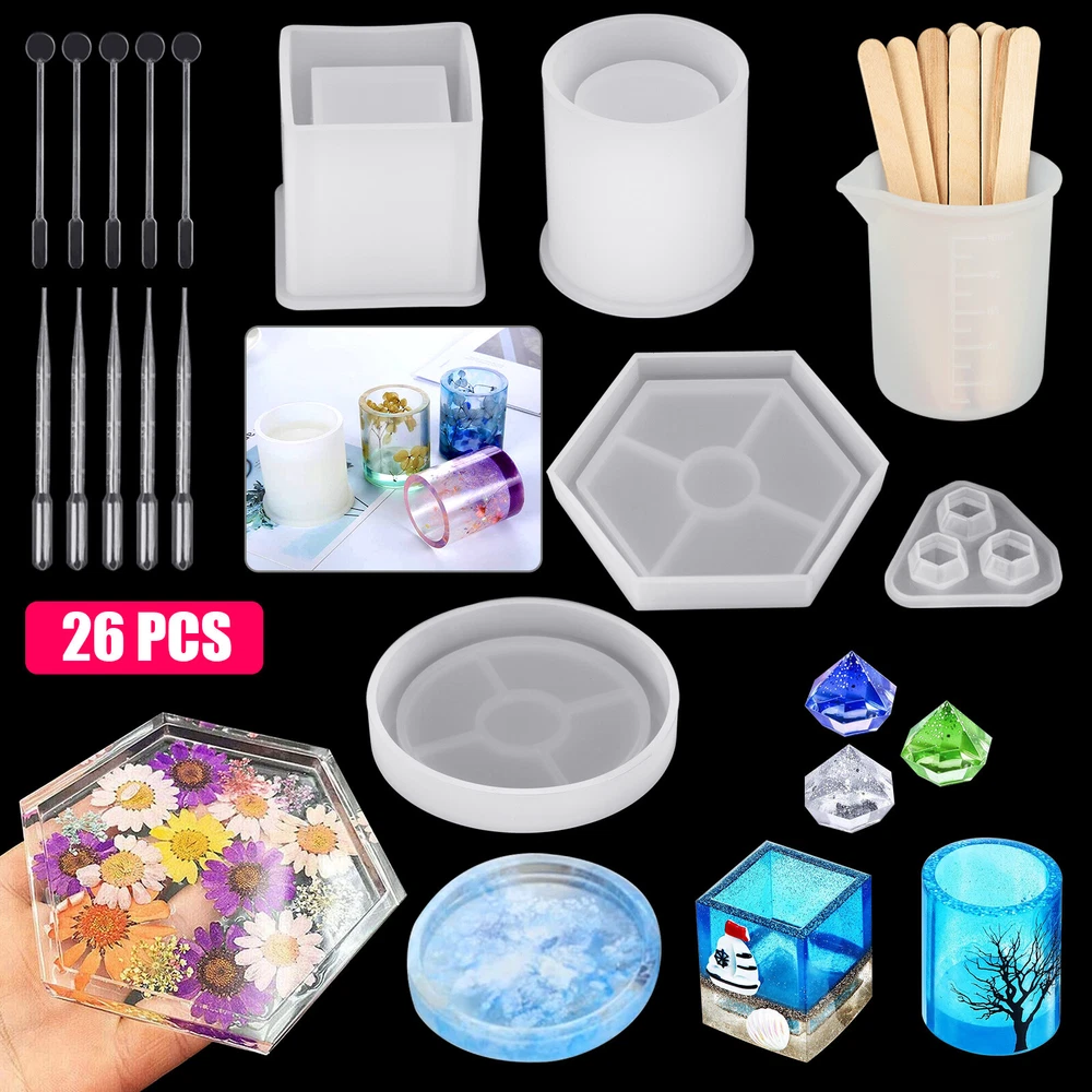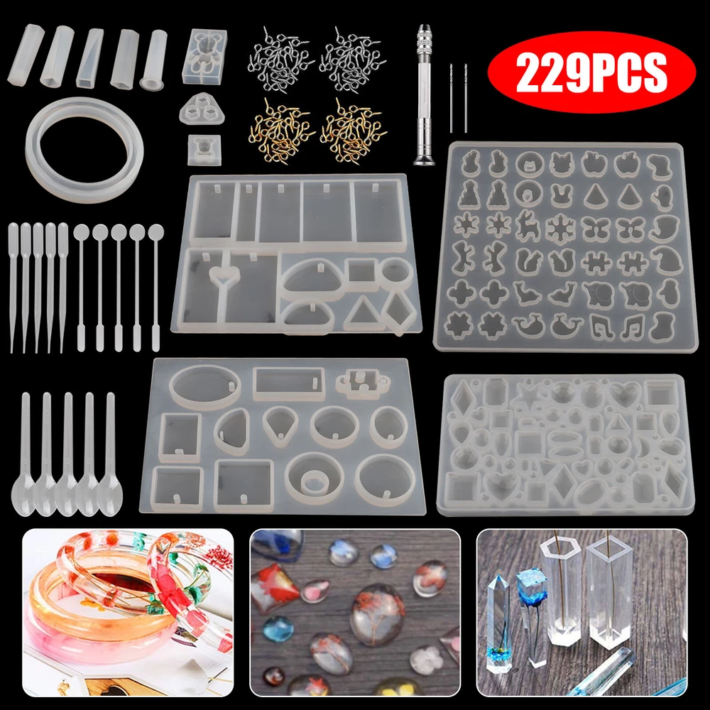 ✅ 11PCS Night Light Casting Mold Product Feature Novel design: Glass bottles resin molds latest designed. Included 1PCS silicone molds, 10pcs wood bottle stoppers, satisfy various DIY needs in your daily life. Durable: Made of durable silicone, the silicone molds for resin are flexible, smooth and reusable. expand your creativity, such as beautiful rainbows, delicate specimens of flowers and plants and wishing crystal bottle. Wide Application: Resin Silicone Molds for Household Decoration at Festivals Gifts, Perfect for office decor, workbench, bedside lamp, nursery lamp, children's room, holiday decor, party, wedding, birthday gifts. DIY Personalized: Your creation' immaculate combination with the LED luminous base makes the best present for your family, lover and friends. Perfect for birthday parties, Valentine's Day, commencement ceremonies and Mother's Day. User Tips: ① Don't use a heat gun or torch to speedily cure the resin. ② Just let it sit 5-10 minutes, after stirring the epoxy resin to reduce the bubbles. Note: Please note that the LED light base is not included. Product Specification Type Bottle Resin Casting Silicone Mold Quantity 11 PCS Material Silicone and wood Package Included 1 x Silicone molds 10 x Wood bottle stoppers ✅ 19PCS Dog Bone Keychain Mold Product Feature High-quality Material: Silicone mold keychain made of food-grade silicone, durable, flexible, good texture, safe and tasteless, and can be used for a long time. The non-stick surface makes it easier for you to use, and will not worry about adhesion. Heat Resistance: The safe temperature range is -40 to +410 degrees Fahrenheit (-40 to +210 degrees Celsius), and can be safely used in microwaves, ovens, refrigerators, freezers and dishwashers. DIY Handmade Gifts: Just add some small objects and paint, you can make meaningful handicrafts and DIY keychains for your pet or your friends and family, which will bring a lot of fun in the molding process and improve Your skills. Large-size Key Ring: The larger key ring allows you to pass through the finished hole without pressure to make a beautiful key pendant. (Different from other small key rings on the market) Multifunctional: Silicone molds can make dog tags.You can also add dried flowers, mica powder, sequins, etc. Sequins make the key chain decoration. Product Specification Type Resin Molds Quantity 19 PCS Material Food grade silicone Color Pink Package Included 4 x Keychain Silicone Mold 15 x Key Ring ✅ 1PC Coffin Mold Product Feature What You Will Get: Coffin box silicone molds. Size: App.12.5 x 7.5 cm/4.92 x 2.95 in. Good Quality Jewelry Box Molds: These silicone molds for resin are made of durable silicone, flexible, smooth and reusable, easy to use, de-mold, and clean. Easy to Release and Clean: Keep the resin jewelry molds interior smooth and clean before use, then it’s easy to fetch out your finished item after it’s completely cured; Clean the epoxy molds with soap water and storage them away from direct sunshine and dust. Wide Application: These resin molds for jewelry can be used to store the earring, ring, coin, key. Besides, you can use the resin molds as a candle holder, candy containers, desktop ornaments, flower pot for small plants, etc. The mold is used to make storage boxes, mini coffins, etc. or other accessories. It is also good for your family and friends to DIY unique and meaningful craft gifts. Product Specification Type Resin Molds Quantity 1 PC Material S ilicone Size App.12.5 x 7.5 cm/4.92 x 2.95 in Package Included 1 X Coffin Silicone Mold ✅ 1PC DIY 3D Skull Head Mold Package Included 1 x 3D Skull Head Resin Mold ✅ 1PC DIY Coaster Ashtray Mold Product Specification Type Skull Ashtray Silicone Mold Quantity 1 PCS Material Silicone Color White Size About 13x13 cm Package Included 1 x Resin Mold ✅ 229PCS Set Product Feature Material: High quality silicone resin jewelry molds material of silicone, which is flexible and smooth. Screw eye pins are made of metal alloy, stirrers, droppers and spoons are made of quality plastic. Contains with Various Shapes: 229 pieces in total, include 8 jewelry silicone casting molds (assorted styles), 5 plastic stirrer, 5 plastic dropper, 5 plastic spoon, 5 shapes resin molds, 1 hand twist drill (include 2 pieces twist bits), 100 x screw golden eye pins and 100 x screw silver eye pins. Easy to Use and Clean: Many operating tools, help you make them more easily.Silicone material for easier cleaning. Various Shapes: There are more than 100 various designs of resin molds include star shape, round shape, heart shape, letter, cubic shape, bracelet shape and bear shape, allow you to DIY your jewelry in different shapes easily. Wide Applications: This re-usable resin casting mold set is a good choice for you to share your handicraft with your friends and family, enjoy your happy times together. Can be applied to DIY different handiwork and jewelry, such as key chain, earrings, necklaces, pendant, bracelets and more. Product Specification Type Jewelry Resin Casting Molds Kit Quantity 229 PCS Color Clear Material Silicone, plastic, metal Size As the picture shows Package Included 8 x Jewelry Mold 5 x Plastic Stirrer 5 x Plastic Dropper 5 x Plastic Spoon 5 x Shapes Resin Molds 1 x Hand Twist Drill 100 x Screw Golden Eye Pins 100 x Screw Silver Eye Pins ✅ 26PCS Set Product Feature Durable and Reusable: High-quality resin jewelry molds material of silicone, which is flexible and smooth. It re-usable, not easily damaged. Contains with Various Shapes: Totally have 26pcs, it includes round and square mold, diamond mold, coaster mold, measuring cup, plastic droppers, plastic stirrers, wooden stirrers. Easy to Use and Clean: Silicone material for easier cleaning, these resin molds have different shapes and designs, can be used to DIY craft handwork. Easy to Release: With smooth and shiny interiors. After your project is fully cured, it will be easy to pull your finished resin items out after it's fully cu