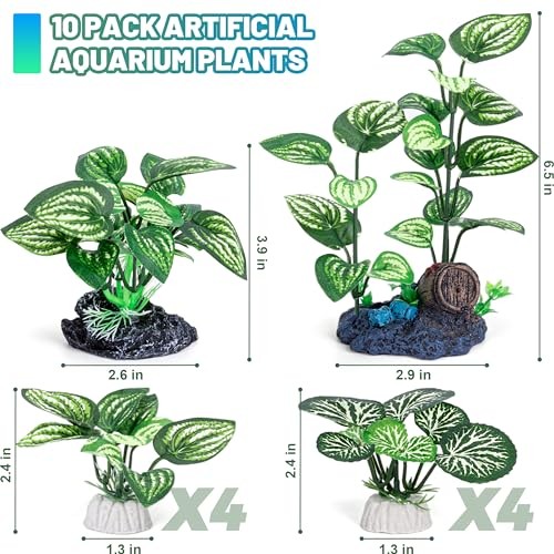 Return Policy Fast Delivery Trusted seller Silk Aquarium Plants, 10 Pack Betta Fish Tank Decor for Aquarium Decoration and Fish Tank Decorations Product Description Premium Materials: Aquarium plants are made of silk, plastic and ceramic. Plastic aquarium plant is safe, soft and reliable, won't contaminate water, and the color won't fade Silk Aquarium Plants: Soft silk leaves allow your fish to rest, shuttle and hide in the aquarium plants, which won't hurt your fish or other pets. Set of 10: Betta fish tank decor set includes 1 large aquarium plant, 1 medium aquarium plant and 8 small aquarium plants, total 10pcs Heavy Duty Base: Each artificial fish tank plant has a thick and stable base that prevents the plant from moving or floating in the water Widely Used: Suitable for any fish tank aquarium, turtle tank, home decoration and more Realistic Fish Tank Decoration: Simulate the natural environment to create a comfortable living environment for fish. Great for saltwater, tropical and freshwater aquarium environments Assorted Sizes: Aquarium decor plants range from 2.4 inches to 6.5 inches in height. Suitable for fish tanks of 10, 20, 30 gallons or even larger Shipping Returns Payment Shipping Shipping is FREE to all addresses other than APO/PO boxes in the lower 48 states. All our stock ships from US-based warehouses. Shipped via USPS or UPS (depending on location and package weight) Unless stated otherwise, all orders will ship within 24-72 hours of your payment being processed. Check our feedback to see the great reviews of FAST shipping we offer. Returns Seller does not accept returns Payment We currently accept payment via eBay managed payments only. Once payment is cleared, we will dispatch your shipment within 1-3 business days. Please refer to the "Shipping" tab for more information regarding shipping speed to your destination.