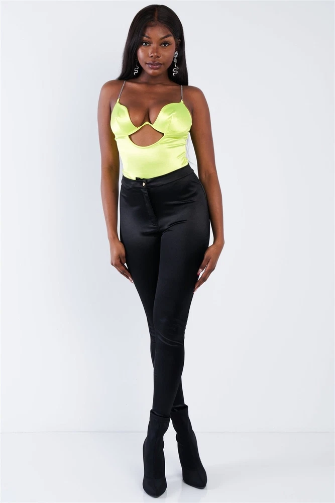 Returns are accepted however, they must be made within 7 days of receipt and you message me through eBay for instructions on how to return the item. Introducing our Silk Chain Spaghetti Strap High Thong Center Cut Out Bodysuit in vibrant Neon Yellow. This bodysuit is crafted from sheen silk, featuring thoughtful design elements that add a touch of glamour and allure to your wardrobe. Key Features: 1. Material: Made from 95% Polyester and 5% Spandex, this bodysuit offers a luxurious sheen silk fabric with a slight stretch for a comfortable and flattering fit. 2. Design: The spaghetti straps provide an elegant look, complemented by silver chain hardware details for a touch of sophistication. The underwire adds structure, and the center keyhole cutout creates a captivating focal point. 3. Thong Style: The high thong design adds a modern and sleek touch, ensuring a seamless look under clothing. 4. Color: The Neon Yellow hue adds a bold and energetic pop of color to your wardrobe. 5. Unlined: This bodysuit is unlined, allowing the sheen silk to delicately enhance your silhouette. Product Details: - Glamorous Appeal: The combination of sheen silk, silver chain hardware, and the center cutout makes this bodysuit a statement piece for special occasions. - Comfortable Fit: The slight stretch and thoughtful design elements provide both comfort and style. - Versatile Styling: Wear it alone for a daring look or layer it under a jacket or sheer top for a more subtle yet chic appearance. Why Choose Silk Chain Spaghetti Strap High Thong Center Cut Out Bodysuit? - Elegance and Edge: The sheen silk, chain hardware, and center cutout bring a perfect blend of elegance and edginess to your outfit. - Versatility: Whether you're heading out for a night on the town or want to make a bold statement, this bodysuit is a versatile choice. Ideal Occasions: Perfect for a night out, special events, or whenever you want to showcase your bold and confident style. Customer Reviews: "This bodysuit is a showstopper! The Neon Yellow color is stunning, and the chain details give it that extra edge." - A. S. "I love how comfortable and stylish this bodysuit is. The center cutout adds a flirty touch, and the sheen silk feels amazing on the skin." - E. L. "The high thong design is perfect for seamless layering, and the Neon Yellow color is so vibrant. I get compliments every time I wear it!" - S. B. Size Guide: For accurate sizing guidance, please refer to our size chart available on the website. Shipping and Returns: - Fast Shipping: Experience prompt delivery to your doorstep. - Hassle-Free Returns: Our flexible return policy ensures your satisfaction. Elevate your wardrobe with our Silk Chain Spaghetti Strap High Thong Center Cut Out Bodysuit in Neon Yellow. Add it to your cart now for a bold and glamorous addition to your collection! Silk Chain Spaghetti Strap High Thong Center Cut Out Bodysuit