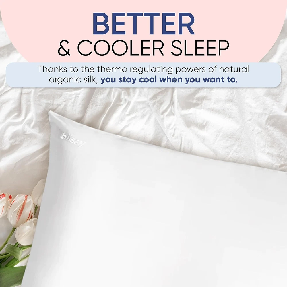 100% 22-momme 6a Grade Mulberry Silk 22-MOMME 6A GRADE MULBERRY FIBERS: Blissy Silk Pillowcases are handmade and crafted from high quality 22 Momme 100% Pure Mulberry Silk. We have spent countless hours prototyping, testing and using our products to ensure the highest quality and durability. TAKE YOUR HAIR FROM DRAB TO FAB: No more bedhead or tired hair! Kiss dryness and tangles goodbye! Blissy prevents the tugging and pulling provided by ordinary pillowcases. Plus the non-absorbent surface helps to maintain your hair’s naturally producing oils. SKIN SAVING: Why waste time and money on a pillowcase that will only absorb vital skin nutrients? With Blissy 100% Mulberry Silk, your skin will maintain the balanced moisture it needs to form a protective layer. Fight against dryness and acne, two sides of the same coin! BETTER & COOLER SLEEP: The temperature regulating properties of the Blissy silk pillowcase allow you to keep cool at all times during the night without the discomfort associated with fluctuating temperature and the constant tossing and turning for a restful night sleep. ENJOY A FRESHER MORNING: Say farewell to discomfort and hello to a more soothing sleep with our silk pillowcase. Its smooth surface is less prone to irritating sensitive skin, helping you wake up feeling refreshed, with a clearer complexion and a more comfortable start to your day. Product description