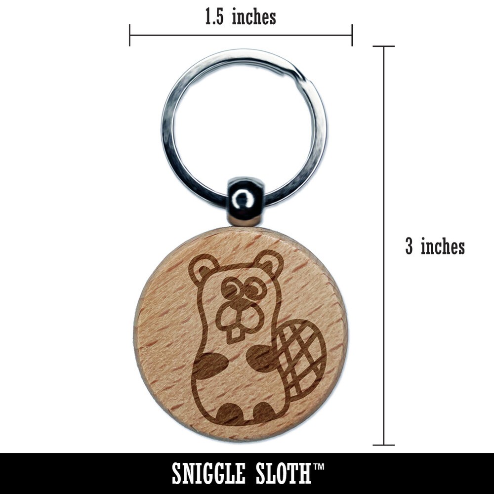 Silly Beaver Wooden Keychain with Doodle Engraving Charm