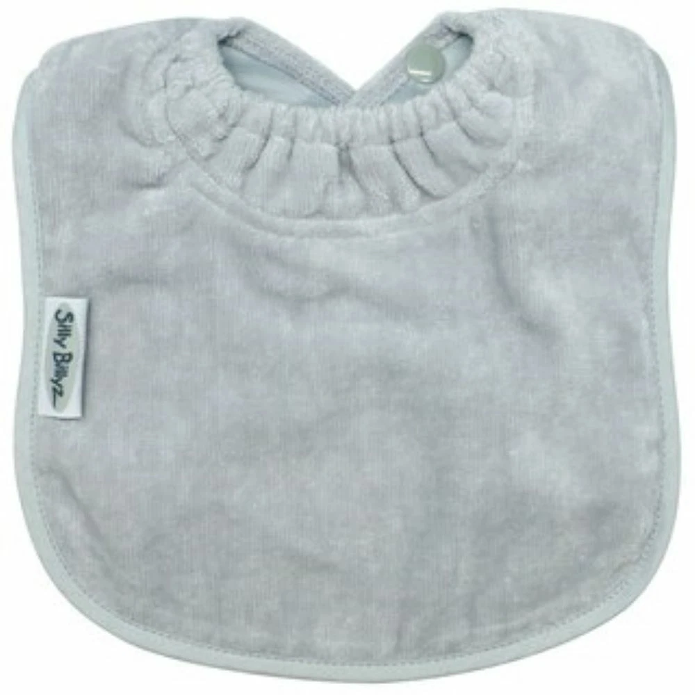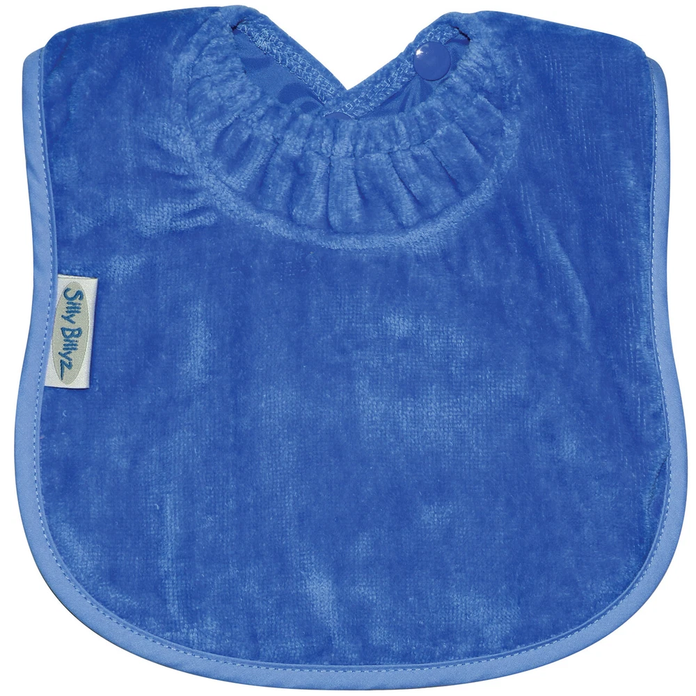 Silly Billyz plain toweling bibs are made from a premium 100% cotton velour and backed with water-proof nylon. Super absorbent and stain resistant, these bibs are also machine washable and tumble dry safe. A two position snap closure with snuggle neck ensures a comfortable fit that helps prevent leaks. All Silly Billyz bibs are PVC and Lead free. They feature a two position snap closure for adjustable comfort. Snap closures are more secure and last longer than Velcro closures and don't get stuck on other items in the dryer! Silly Billyz bibs are preferred by daycare centers for their durability, wash-ability and their ability to repel stains. Ages 3 months to 3 years. Shipping information We ship orders via USPS every weekday. If an item is paid for by 1 pm EST, it will be processed and shipped the same business day. Combined Shipping We do offer a combined shipping discount when multiple items are purchased via US Standard Shipping and International Shipping. After purchasing the items, click on request total from seller and please wait for a revised invoice before paying for the order. Return policy We offer a 30 day return policy. Buyer is responsible for return shipping charges. Refund for merchandise only, but not any shipping charges paid by the buyer. Item must be returned in original packaging. Hours of Operation We are open Monday thru Friday, 8:00 am to 4:00 pm. We are closed on weekends and holidays.