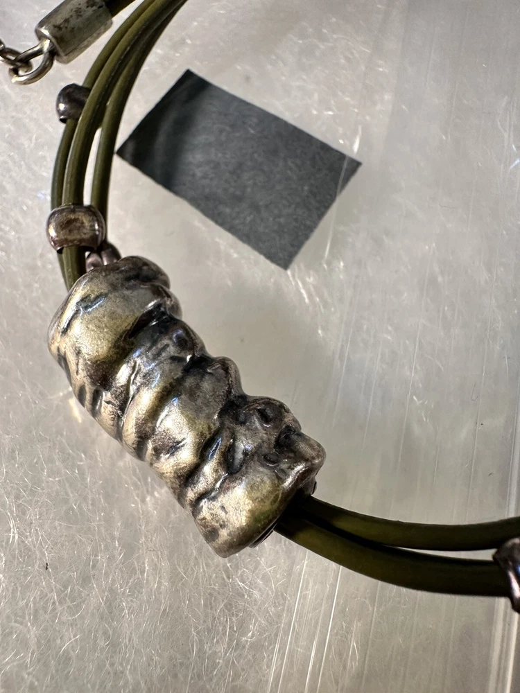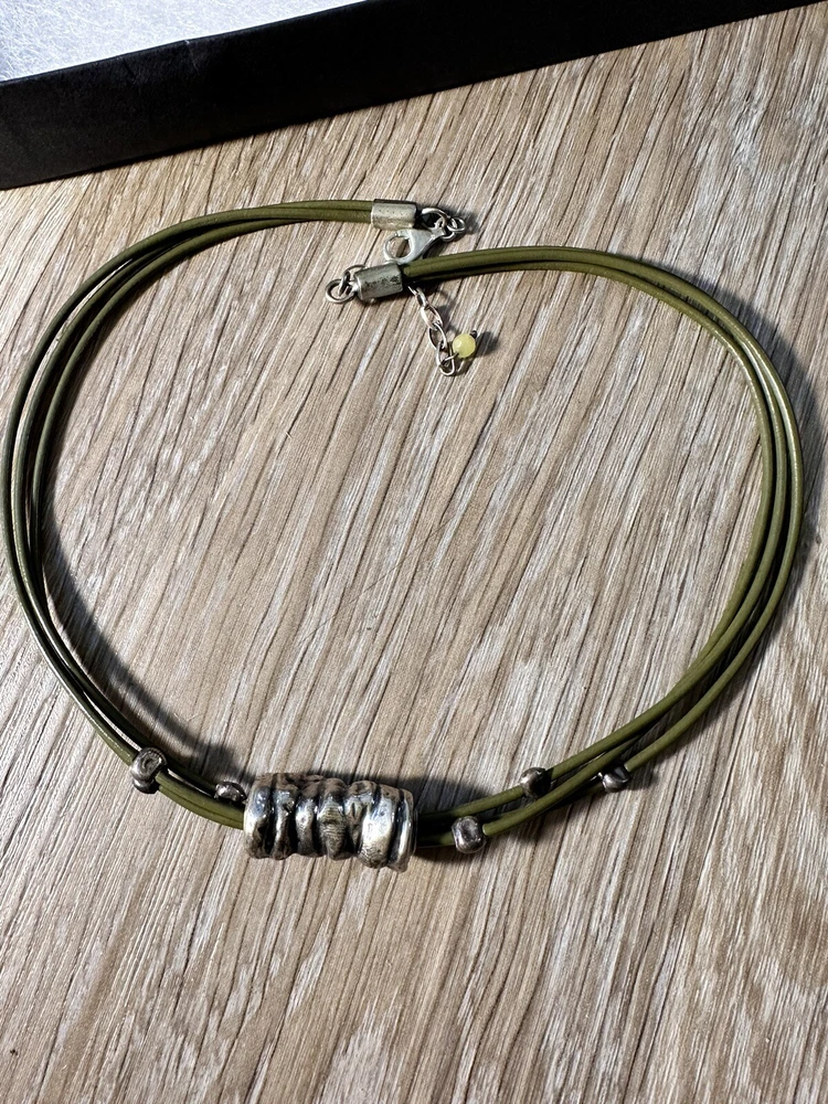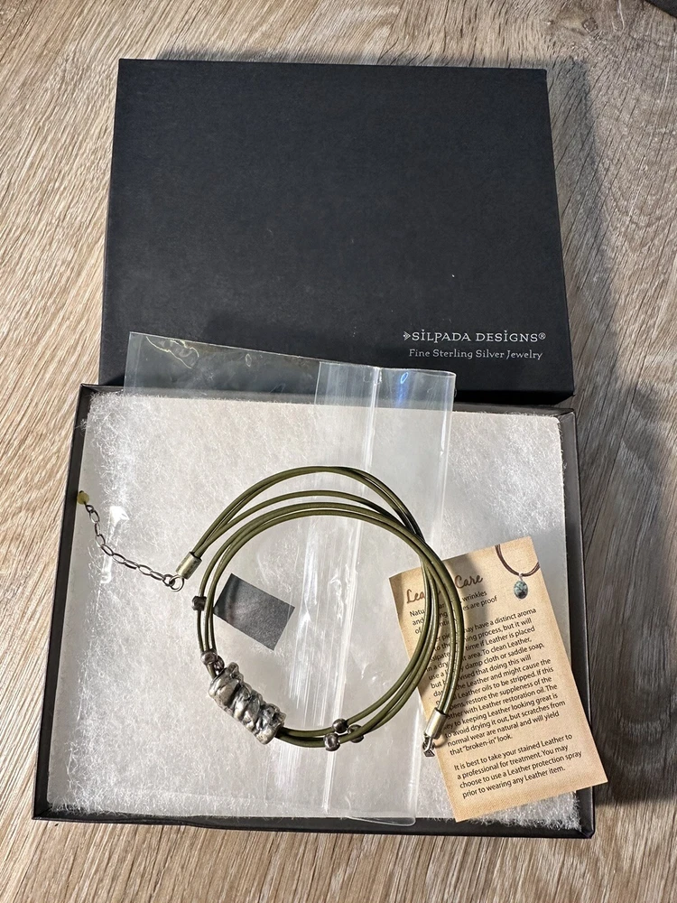 HomeSilpada Retired Sterling Silver And Green Leather Necklace