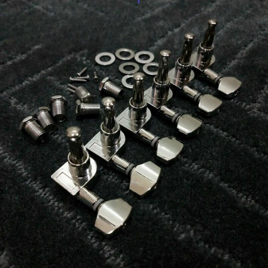 Silver 6R Tuners Tuning Pegs Keys Machine Heads for Fender Electric Guitar-arc Features: 100% new high quality and testing is fine. Fit for fender strat,fender tele electric guitar. The product comes with logo engraved on the back. Set of 6 right quality silver machine heads for fender strat,tele electric guitar. Quality sealed machine heads. Heavy duty internal gear. Color: Silver. Package Include: 6 right guitar machine heads 6 x ferrules 6 x screws 6 x threaded bushings
