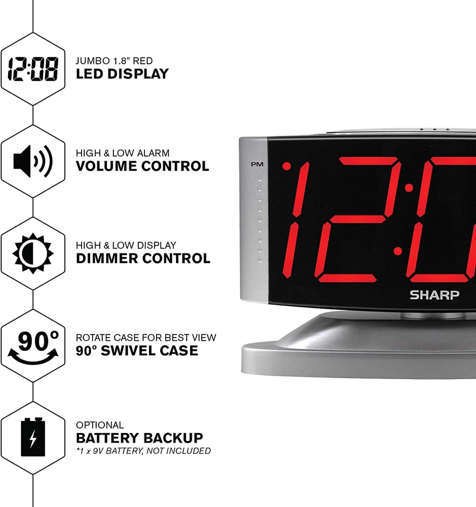 This digital alarm clock is a game-changer! Super easy to use—perfect for anyone, from kids to seniors. The loud alarm ensures you never oversleep, and the adjustable volume is a great touch. Love the snooze function for those extra sleepy days. The jumbo LED display is crystal clear, even at night, with adjustable brightness so it doesn’t disrupt sleep. The swivel base makes it easy to position just right. Highly recommend!