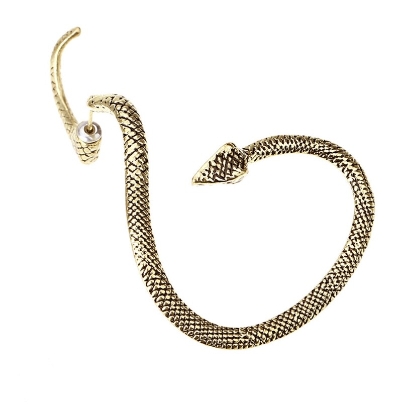 Features: and high Fits On Ear Good.Only And Only Fits The Left Ear.Looks pretty cool,you can wear it for your Halloween costume, it will be very unique. Unique The snake earring cuff gracefully around the left ear only.adding yor personality. Silver Large Snake Earrings high alloy,comfortable to wear,stay long,not fade. Halloween goth Earrings suit for daily wear or party wedding prom nightclub or any special occasions. for Choice:Ear cuffs is for choice during Christmas Day, Halloween, Anniversary Day, Valentine's Day, Mother's Day and Birthday to your loved Specifications: Alloy Main Stone Color: Black/ Gold/ Silver Size: Approx.5.2x4.2cm/2.05x1.65inch Package Includes: 1 Piece Ear Studs note: Please allow 0-1cm errors due to manual measurement, make sure that you do not mind before you order. Due to the difference between different monitors, the picture may not reflect the actual color of the item.