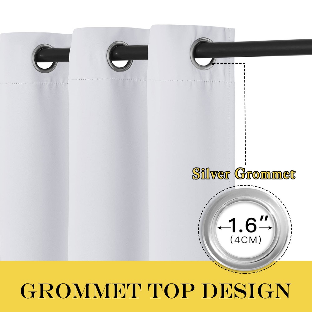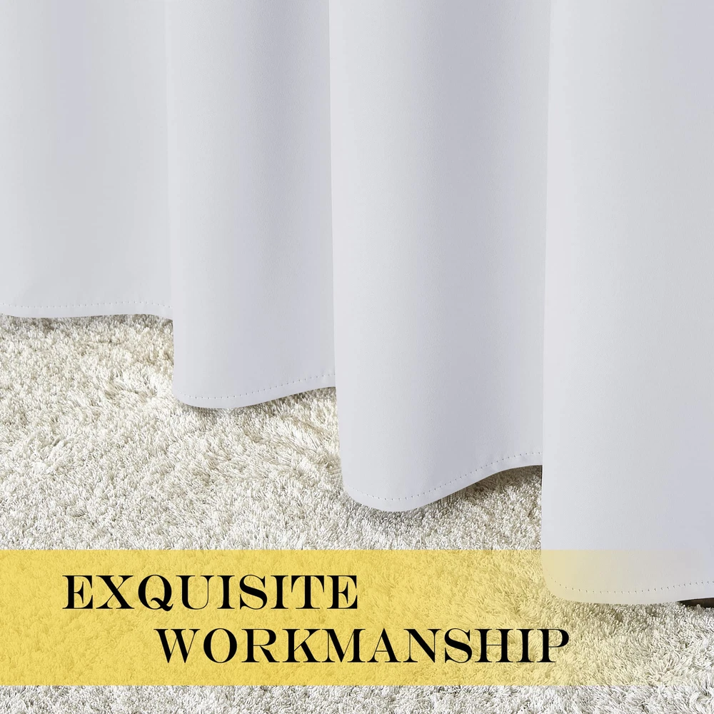 AMAZING FABRIC: The blackout curtain's fabric is super soft and heavy innovative triple-weave polyester fabric. The same material back as of front makes it appear more elegant. The 14 sliver grommets top (inner diameter is 1.6-inch) adds a modern touch and easy hanging. MULTIPLE FUNCTIONAL: These extra wide curtains are wide enough to cover the sliding door perfectly. Besides, the curtain panel helps your patio door to block out most of the light, high performance on thermal insulated, noise-reducing, and privacy-protecting. ENERGY SMART: Triple weave blackout fabric balances room temperature by insulating against summer heat and winter chill, reducing air conditioning costs. Protect your furniture, floors, and artwork from the ravages of the sun, the Patio Door Drapes will pay for themselves off over time. WISE COMPATIBLE: Thread trimmed and wrinkle-free, all sets for you to put them up right away. Suitable perfectly for sliding doors, patio doors, and any large window. These wide curtains can be hung separately, or combine with sheer curtains. EASY CARE: Good-quality finishing will withstand years of use. Machine washable and Wash the water temperature below 86F. Mild detergent no bleaching. Low-temperature ironing. Don’t use sharp things scratching curtains.