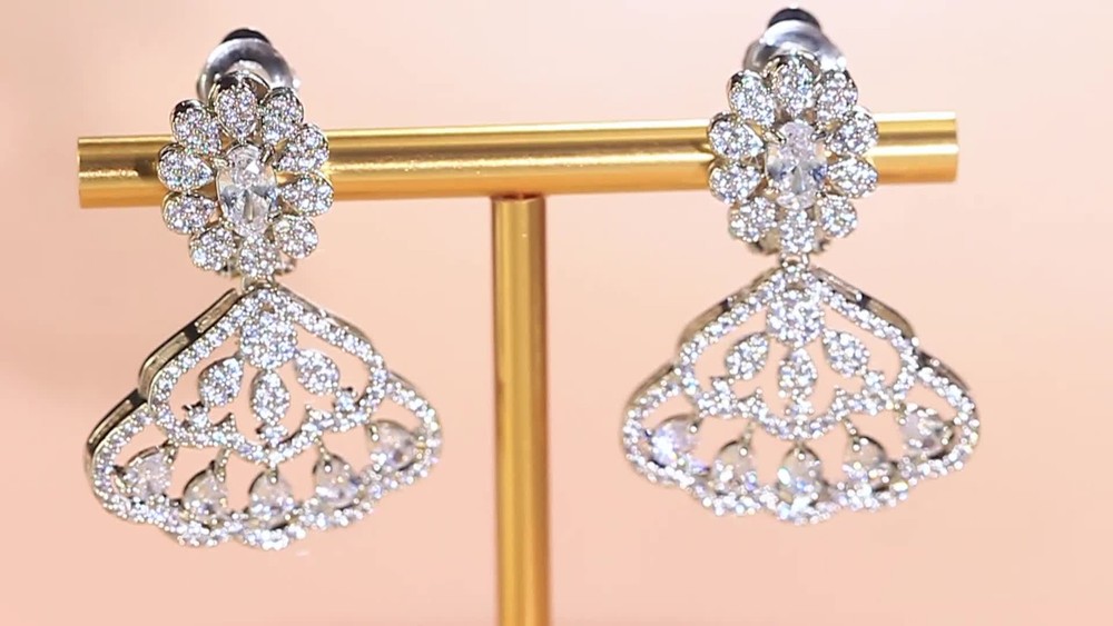 Silver Plated CZ Fan Drop Clip-On Earrings No Piercing Required