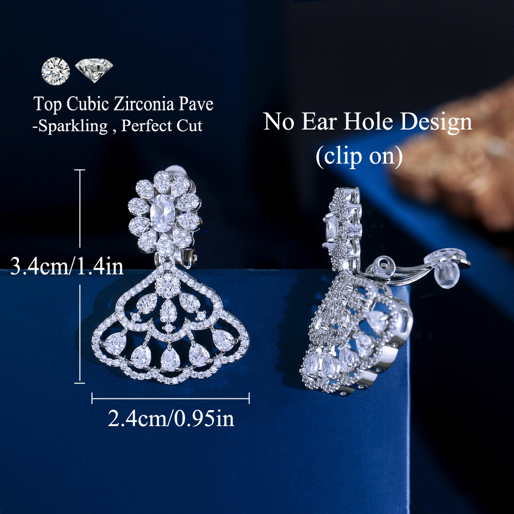 Occasion: Weeding , Dancing Party , Banquet Dinner Secondary Stone: Cubic Zirconia Earrings Size: 3.4 cm/1.4 inch*2.4 cm/0.95 inch Color: White Type: Earrings Main Stone: Cubic Zirconia UPC: Does not apply Metal: Silver Plated Main Stone Color: White Closure: Clip-On gtin13: Does not apply Item Type: CZ Clip on Earrings for Wedding Party Material: Cubic Zirconia Base Metal: Copper Fit For: Women , Brides , Girls , Mother ,Wife Style: Ear Clamp Brand: CWWZircons Shape: Long Dangling Drop