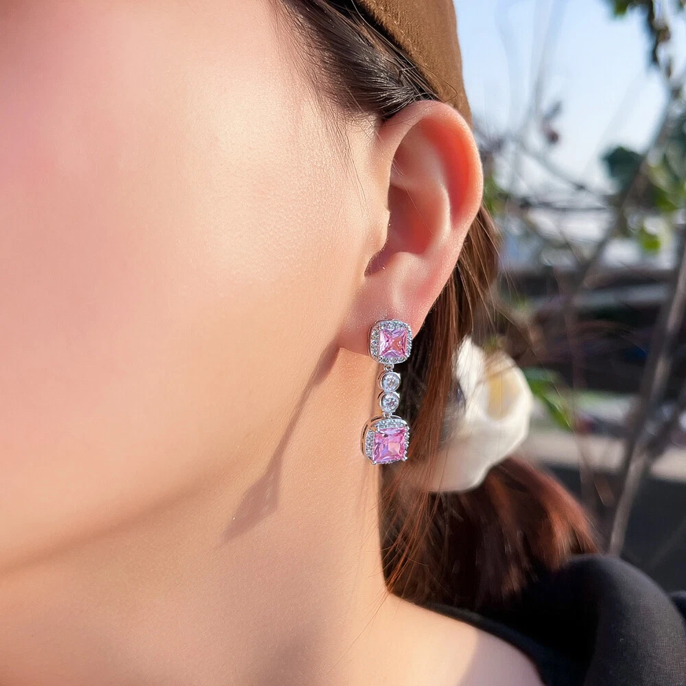 Silver Plated Cubic Zirconia Pink Square Dangle Drop Earrings Cute Women Jewelry Specifications : Condition: New Material: Cubic Zirconia Earring Size : 3*1 cm Features: 1. CZ Stone Material - Top Level Cubic Zirconia. Excellent Cut Simulated Diamond. Enjoy the Dazzling Sparkle from Cubic Zirconia Dangle Drop Earrings. 2. These Unique Dangling Drop Earrings are Suitable for Almost all of Sensitive Ears. These are the Top Cubic Zirconia Women Earrings for Daily Wear. 3. Suitable for Various Occasions: Ideal for Wedding, Prom, Pageant, Parties, Homecoming, Black Tie Formal Affairs, Holidays , Valentine's Day, Mother's Day, Christmas, Anniversary, Graduation, Birthday and Special Occasions. 4. a Perfect Jewelry Gift for Women , Bride , Bridesmaid , Mother ,Wife , Lover , Fiancee , Girl Friend . Package Includes: 1 Pair of Earrings Payment Delivery details Terms of sales About us Contact us Payment 1. We only accept payment by Paypal 2. We request you pay within 5 days of the first auction close. Failure to do so may cause our automated dispute system to file disputes for unpaid items Delivery details We only send items to the registered eBay address.Items will be shipped within 2 business days from the date payment is received (not include public holiday and weekend) . As per eBay regulations, import duties, taxes, and customs charges are the buyer's responsibility. Please check with your country's customs office to determine what these additional costs may be prior to bidding or buying. Terms of sales After-Sale Please contact us to request a return/replace/refund authorization.It will be best if you use ebay message to contact me. 1, Return and replacement request is available only the requests within 30 days after parcel received. 2, Returning the item as the same condition as received. Situation and solution Defectives ---Please contact us and provide a photo of the defective part. After situation confirmed,we will offer you refund/return/replacement according to the situation Not as Described ---Please contact us and provide a photo of the wrong part. After situation confirmed,we will offer you refund/return/replacement according to the situation Not Received ---Please undersatnding shipping on the way was out of our control ,because of the busy shipping season,holidays,bad weather or force majeure etc. It may be delay for days. But if it took too much time and not deliveried, Please message me, I will offer you solution for it. About us Working time: Chinese time(Eastern eight zones):Monday to Friday ,9:00 am to 6:00 pm. We do not work on chinese legal holiday. Message reply: We will reply all messages within 24 hours of business time. Contact us Please contact us via ebay message, it was the best way for both you and us to solve problems. Any questions or anything you need, please feel free to contact us.