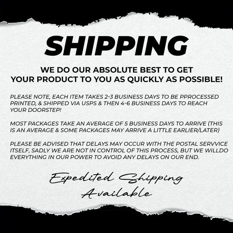 Proudly Designed & Printed in the USA All of our T-shirts are BRAND NEW and made to order. They are printed in our USA facilities with love and passion. We use various printing methods to ensure you the high quality, long lasting garments you or your loved ones deserve. If you want a different color, please take a note in your order or send us a message. Available colors: Ash, Black, Charcoal, Dark Chocolate, Dark Heather, Forest Green, Gold, Ice Grey, Irish Green, Kiwi, Light Blue, Light Pink, Maroon, Military Green, Navy, Orange, Purple, Red, Royal, Sand, Sport Grey, Tropical Blue, Turf Green, White, Antique Irish Green, Antique Orange, Antique Sapphire, Azalea, Cardinal Red, Carolina Blue, Cobalt, Coral Silk, Cornsilk, Daisy, Graphite Heather, Heather Navy, Heather Red, Heliconia, Lime, Natural, Sapphire, Tweed. Material: 5.3 oz/yd², Dark Heather, Graphite Heather, Heather Navy, Heather Red, Tweed (50% cotton, 50% polyester); Sport Grey, Antique Irish Green, Antique Orange, Antique Sapphire (90% Cotton/10% polyester), Ash (99% Cotton/ 1% Polyester), All Others (100% cotton). Classic, unisex fit - Comfortable to wear and suitable for anyone to wear. Non-stitched, classic width, rib collar. Printing technique: Direct to Garment. Size: S, M, L, XL, 2XL, 3XL, 4XL, 5XL. Delivery Time: USA: Approximately 2-7 business days Shipping Carriers: USPS Note: Business days exclude weekends and holidays. Return & Exchange Policy: Quality Guarantee: We stand behind the quality of our products and workmanship. Any defects or errors on our part must result in a refund/replacement at no charge. Conditions for Returns: Returns are generally not accepted for user errors such as incorrect selection of sizes, designs, or colors. Returns/Replacements are acceptable for damages such as poor printing results, incorrect size or design caused by us. If you have any questions regarding this item or any other item we have for sale, do not hesitate to contact us. We answer all messages within 1 business day !!!