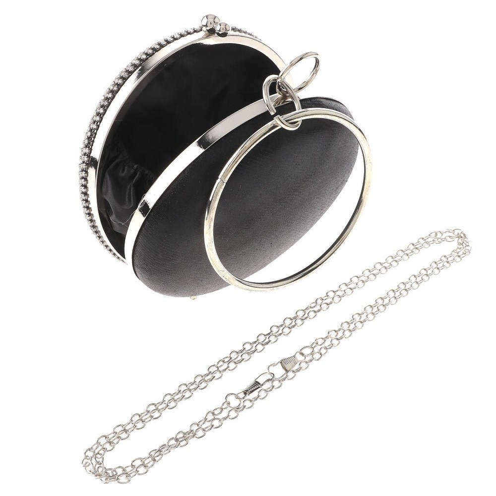 Silver Tone Metal Glitter Fabric Rhinestone Clutch Evening Bag / Long Chain Strap / Approximate Size: 5.5"L x 5.5"H x 2.25"W / Color: Silver & Black Condition: Brand New SKU: TLX173-BLK Color: Black Design: All orders will ship from USA via UPS or USPS. We expect all local orders will receive the items within 7 business days or less depend the location. Worry free international shipment delay or custom duty fee.