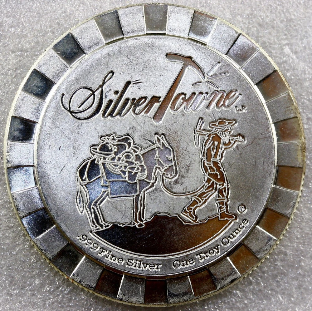 Total Precious Metal Content: 1 troy oz Shape: Round Composition: Silver Precious Metal Content per Unit: 1 oz Year: N/A Brand/Mint: SilverTowne Fineness: 0.999 Modified Item: No Country/Region of Manufacture: United States