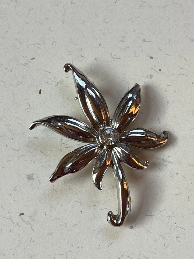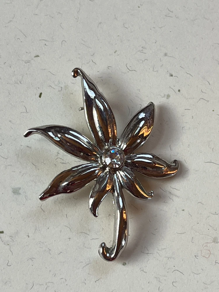 Silvertone Abstract Palm Tree w Clear Rhinestone Accent Pin Brooch – 1 and 5/8 th ’s x 2 inches – VERY GOOD condition – ready to wear – (Location – Gold Seal Vineyards Wood Box w Slide off Top on Wood Shelves) ************************************************************************************************************************************************************************************************************************** COMBINED SHIPPING: 1 win = price listed; 2 wins = 50% of lowest listed shipping price; 3 wins = additional $1.00; 4 WINS (in 7 days) = no additional charge on entire order; Combined Shipping includes AUCTION wins as well as STORE wins (Buy It Now). FREE shipping on combined shipping orders exceeding $100.00 and 4 wins of jewelry only or books only. I will ship worldwide, however, additional shipping charges will apply. I will always attempt to use the cheapest route possible. If you need faster shipping, I will work with you, but you will need to pay the extra shipping charges. I will only be shipping once/week. BOOKS rated using the following scale: FINE – as new condition NEAR FINE – very minor edgewear or other hardly noticeable defect; gift inscription or previous owner’s name might be present or remainder mark; VERY GOOD – minor edgewear, cornerwear, maybe subtle writing or scribbling; remainder mark might be present; previous owner’s name or gift inscription might be present; subtle creases or wrinkles might be present; one or two very tiny tears; pages might be browning; GOOD – multiple condition issues – edgewear, cornerwear, writing or scribbling not affecting the text, creases or winkles, small tears, browning pages; FAIR – many condition problems but still a readable copy POOR – heavy damage but still readable; some books with neat illustrations might be sold with a few pages missing