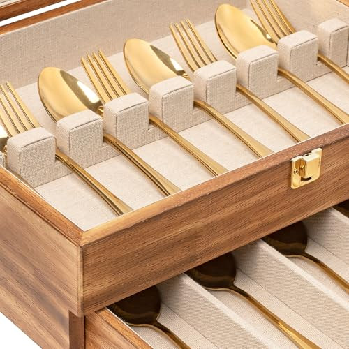 Menu 1. We require immediate payment. 2. We currently accept payment via eBay managed payments only. 3. Once payment is cleared, we will dispatch your shipment within 1-3 business days. Please refer to the "Shipping" tab for more information regarding shipping speed to your destination. Silverware Storage Box, 2-Layer Flatware Storage Case with Drawer, Wooden Silverware Chest with Linen Liner, Rustic Silverware Case for Storing Fine Flatware and Utensils (Brown) Product description Premium Silverware Storage Box: This wooden silverware storage case with drawers combines rustic charm with elegant design, providing 2-layer space to organize daily utensils or store exquisite silverware for gatherings or special occasions. Size of silverware box: 14.9"W x 11.1"D x 5.5"H Authentic Wood Craftsmanship: Crafted from solid wood in a rustic country style, this sturdy and durable silverware chest exudes a sense of luxury. The silverware boxes for flatware features the linen lining to effectively prevent scratching or damage to your silverware, ensuring they're intact for years to come. Large Capacity Silverware Case: Vertical slots for butter knives, stackable compartments for salad and dinner forks and spoons, and a pull-out drawer for additional cutlery make organizing easy. Home Decorative Silverware Storage: Enhance your home's aesthetic with this wood silverware flatware storage box, displaying it in a cabinet or display case to add a touch of sophistication, resembling a piece of art. Ideal Gift: This flatware chest makes an excellent holiday gift for family and friends who own silverware sets, suitable for Mother's Day, Father's Day, Memorial Day, Christmas, and Thanksgiving, etc. PLEASE MESSAGE US IF YOU HAVE ANY OTHER QUESTIONS, AND MANY THANKS FOR READING ALL OF THIS. Copyright ©#. All Rights Reserved.