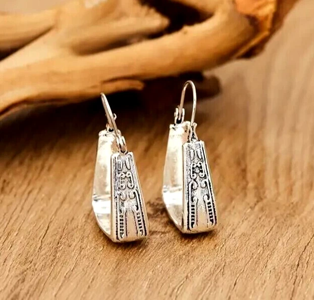 Silvery Boho Unique Vintage Hoop Earrings Statement Jewelry Party Retro Women