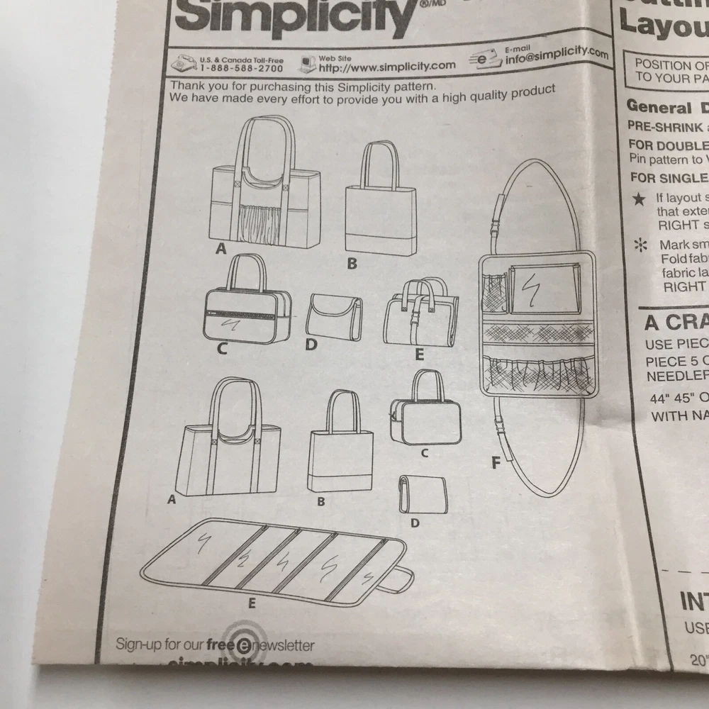 Simplicity 1128 Totes Organizer Travel Bag Car Organizer CUT