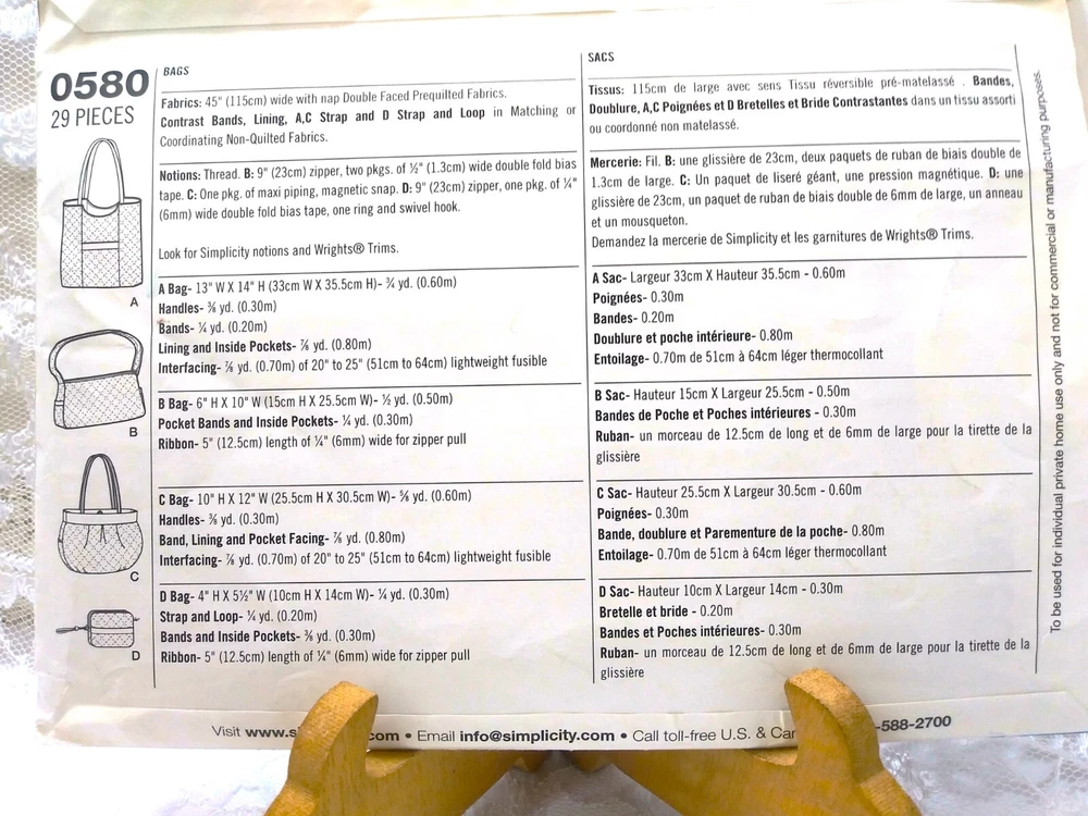 Type: Purse Modified Item: No Features: 29 pieces, 5 bags styles Vintage (Y/N): No Brand: Simplicity Gender: Female gtin13: 039363327820 Cut/Uncut: Uncut UPC: 039363327820 Decade: 2010s Age Group: Teen, Adult MPN: S0580