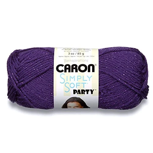 Time to party with Simply Soft Party! Featuring a tone-on-tone sparkle, Simply Soft Party yarn is everything that you love about the Simply Soft family, and more! With a hint of metallic, Simply Soft Party yarn is shiny, and still supremely soft to the touch. Add some sparkle to garments, and accessories. Conveniently machine washable and dryable for easy care. Content: 99% Acrylic, 1% Metallic. This yarn is great for knitting, crocheting, amigurumi and craft projects. Easy to care for: machine wash and dry. Ball Size: 85g / 3 oz, 150 meters / 164 yards Gauge:#4 Worsted (Medium). Knitting Gauge: 4” x 4” (10 cm x 10 cm) 16 sts x 20 rows with 5 mm knitting needle ,Crochet Gauge: 4” x 4” (10 cm x 10 cm) 12 sc x 13 rows with 5 mm crochet hook yarn takes color inspiration from everywhere, making it easy for you to find the perfect color for your project – or inspire you to try something new! Check out the many kinds of yarns and discover a versatile yarn for knit and crochet patterns like sweaters, blankets, pillows, accessories, and more! Time to party with Simply Soft Party! Featuring a tone-on-tone sparkle, Simply Soft Party yarn is everything that you love about the Simply Soft family, and more! With a hint of metallic, Simply Soft Party yarn is shiny, and still supremely soft to the touch. Add some sparkle to garments, and accessories. Conveniently machine washable and dryable for easy care.