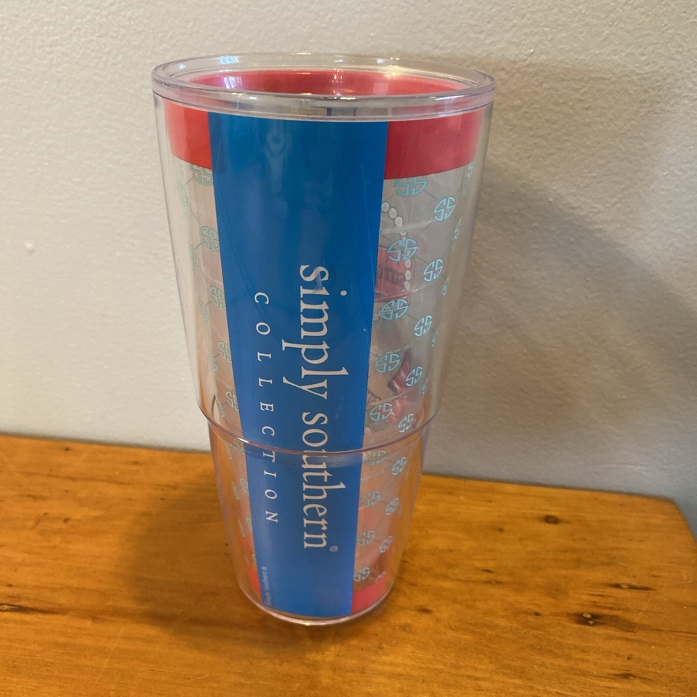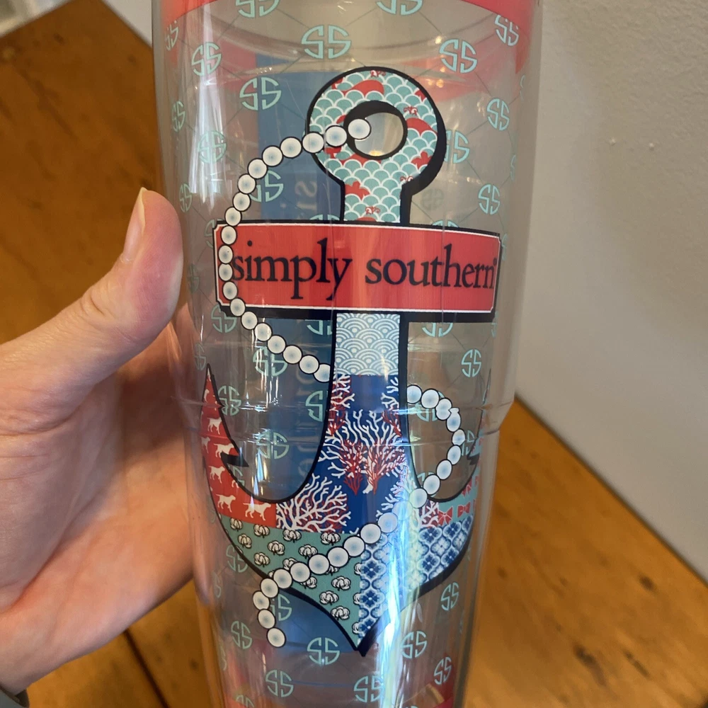 Simply Southern Anchor 24 oz Tervis Tumbler in Coral Pink and Blue Beach Design