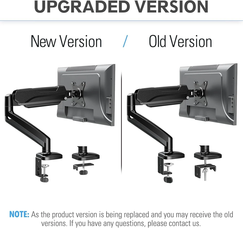 Product Description Single Monitor Desk Mount, Adjustable Gas Spring Monitor Arm Support Max 32 Inch, 4.4-17.6Lbs Screen, Computer Monitor Stand Holder With Clamp/Grommet Mounting Base, Vesa Mount Bracket, Black Universal Monitor Arm: Monitor Desk Mount Perfectly Fits Most Led/Oled/Qled Flat Or Curved Computer Screens Up To 32 Inches, Holds 4.4-17.6 Lbs, Suitable For Vesa Patterns Of 75X75Mm & 100X100Mm. Compatible With Asus, Acer, Samsung, Lg, Hp, Aoc, Dell, Lenovo, Etc., Including But Not Limited To 32 30 28 27 25 24 23 22 21 20 19 17 Inch Screen, ๐๐ฎ๐ญ ๐ง๐จ๐ญ ๐๐จ๐ฆ๐ฉ๐๐ญ๐ข๐๐ฅ๐ ๐ฐ๐ข๐ญ๐ก ๐๐๐๐๐/๐๐๐๐๐/๐๐๐๐๐ ๐๐ฎ๐ซ๐ฏ๐๐ ๐ฌ๐๐ซ๐๐๐ง๐ฌ. Full Motion Monitor Stand: This Single Monitor Arm Offers A Wide Range Of Movement. Supports Screen Rotates 360ยฐ For Landscape Or Portrait Orientation, Swivels 180ยฐ To Share Your Display, And Tilts Up 90ยฐ/Down 45ยฐ For Better Viewing. The Arm Can Extend Up To 19.27" Long, And Rise Up To 16.3" In Height. Easy To Find The Right Viewing Angle And Position. Tension Adjustment Is Based On The Weight Of Monitor And The Gas Spring Is Pre-Set To Mid-Tension, Please Adjust Tension After Hanging On Monitor. Easy To Assemble: Our Monitor Vesa Desk Mount Is Easy To Install With A Drill-Free C-Clamp(Desk Thickness Within 0.39''-4.53'') Or Grommet Base Mount(Desk Thickness Within 0.39''-3.15'', Hole Diameter Within 0.39''-2.36''). If The Thickness Of Your Table Is Not Within This Range, Please Relate With Us For Suitable C-Clamp. Comes With Clear Manual And Mounting Hardware Needed. Less Than 15 Minutes From Opening Box To Use. Free Up Your Desk Space: Heavy-Duty Monitor Arm With Built-In Cable Control Professionally Helping To Hide Wires. The Single Monitor Stand Releases More Than 80% Desktop Space To Place Office Accessories Compared To A Monitor Holder With A Large Base While Creating A More Comfortable Work Environment. More Desk Space, Better Workflow! Sturdy Construction & Friendly Service: The Stable Gas Spring And Clamp/Grommet Base Are Strong And Durable Enough To Ensure The Safety And Security Of Your Single Monitor Setup. Backed By 3-Year Support. About Us We are a reputable seller with many years of experience selling on eBay. Our goal is to provide high-quality products and excellent customer service. Shipping Items will be shipped within 1-3 business days when we received payment. (Orders are not processed on weekends & holidays) Tracking information will be sent once item is shipped. Delivery time depends on destination and other factors Item is shipped to ebay address. Leaving correct address can minimize delay. For international shipping and shipping to Guam, Hawaii and Alaska, Please contact us before placing the order. International buyers please note: Import duties, taxes and charges are not included in the item price or shipping charges. These charges are buyerโs responsibility. We will try our best to reduce the risk of the custom duties. Local pick-up is unavailable at the moment. Contact Us We reply any email messages within 1 business / working days(off-duty at weekend). If you do not get a response from us, then please check your junk or spam mailbox. Our Business hours: Mon-Fri 9:00-18:00, UTC/GMT +8 hours. Please contact us either by clicking "contact seller" in the "purchase history" section or simply click "ask a question" at the bottom of this page. If you are unsatisfied with our item or service, please contact us before leaving any feedback. We are committed to resolve all issues in a friendly and satisfactory manner.