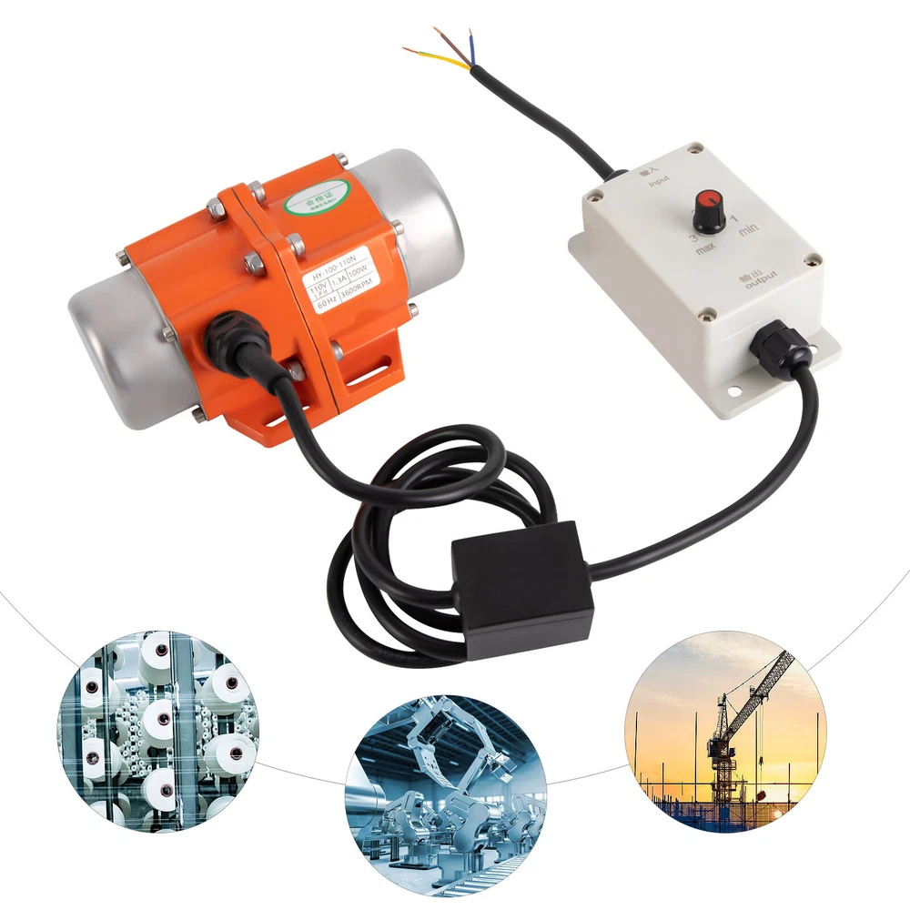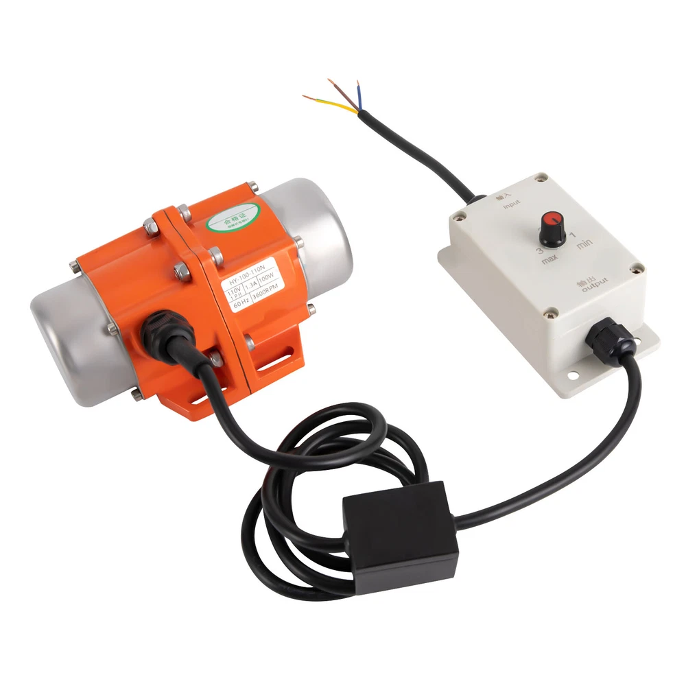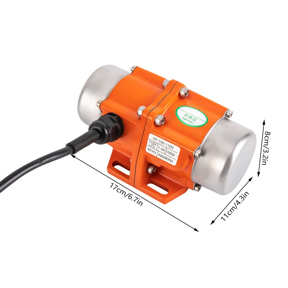 Single Phase Electric AC Vibration Motor As a Concrete Table Shaker 100W 110V US Description This Cutting-edge Electric Vibration Motor Is Crafted with Meticulous Care, Featuring an Innovative Blend of Aluminum Alloy and Pure Copper, Boasting Exceptional Durability and Longevity. Through Advanced Die-casting Techniques, the Motor Boasts Remarkable Corrosion and Oxidation Resistance, While Its Anti-wear and Fast Heat Dissipation Properties Make It a Supremely Reliable and Efficient Solution. Moreover, the Motor Incorporates an Advanced Insulation and Closed Protection Layer, Complemented by a Heat-resistant Pure Copper Coil and a Unique Air-cooling Heat Dissipation Mode. Package Included 1*Electric Vibration Motor 1* Speed Controller 1* English Manual Key Features Sturdy and Durable: the Aluminum Alloy, Pure Copper, and a Die-casting Process Make This Product Resistant to Corrosion, Rust, Wear, and Oxidation, and Has Fast Heat Dissipation, so It Can Withstand the Test of Time Well. Safety Guard: F Insulation Level, Enclosed Protection, High-temperature Resistant Pure Copper Coil (266℉), Air-cooled Heat Dissipation Mode, and Dust and Moisture-proof Function Can Better Ensure Safety During Operation, so You Can Use It with Confidence. Strong Power: the 100w Brushless High-speed Motor, with a Maximum Speed of 3600rpm, High-performance Bearing, and High-precision Rotor Endow This Product with Strong Power, Which Can Work Normally Even Under Heavy Loads and Meet Various Commercial Purposes. Adjustable Eccentricity Block: the Angle of the Eccentric Block of the Vibration Motor Is Adjustable, Allowing for Adjustable Excitation Force. Therefore, It Can Meet Various Requirements. Pre-drilled Holes: Pre-drilled Holes in the Motor and Speed Controller Base Help You Quickly Secure Them with Tools Such As Screws (Not Included), Allowing for More Stable Operation. Application This Product Has Excellent Quality and Can Be Widely Used in Fields Such As Mining, Metallurgy, Coal, Electricity, Construction, Medical Treatment, Casting, Food, Powder Spraying Equipment, Screening Powder, Grain Machinery, Etc. It Can Be Used for Large Steel Rolling Equipment, Large Precision Machine Tools, Mine Winches, Trams, Etc. Specification Model: Hy-100-110n Color: Orange Material: Aluminum Alloy, Pure Copper Surface Treatment: Die-casting Motor Type: Brushless Motor Assembly Required: Yes Mount Type: Free Standing Voltage: 110v Current: 1.3a Rated Power: 100w Frequency: 60hz Maximum Speed: 3600rpm Protection Class: Closed Insulation Level: F Maximum Temperature Resistance of Coil: 130°C/266℉ Protective Grade: Ip65 Noise: 65db Power Source: Electric Energy Engine Cooling Type: Air Cooling Starter System: Hand Start Power Cord Length: 1.5m/59inch Gross Weight: 2.5kg/5.5lbs Package Size: 23*13*16cm/ 9.1*5.1*6.3inch Product Size: 17*11*8cm/6.7*4.3*3.1inch Notes 1.Please Note That the Ambient Temperature for Using This Product Should Not Exceed 122℉. 2.Before Use, Please Fix the Motor with Screws(Not Included) to Avoid Safety Accidents, and Remember to Regularly Check the Tightness of the Installation Screws and Dust on the Surface of the Vibrating Motor. 3.to Meet the Installation Needs of Different Customers, Our Product Does Not Include Plugs. 4.When Adjusting the Excitation Force, Please Adjust the Adjustable Eccentric Blocks at Both Ends to the Same Direction and Angle. Please Be Sure to Secure the Motor and Ensure That the Voltage Is 110v. 5.in Order to Ensure the Normal Installation and Use of the Motor, Please Confirm the Motor Model and Installation Size Before Purchasing. 6.It Should Be Noted That in Many Cases, the Amplitude of a Vibration Motor Is Also Affected by Other Factors, Such As the Stiffness, Damping Coefficient, and Material Characteristics of the Damping Spring. Therefore, the Amplitude of a Vibration Motor Cannot Be Quantified. 7.Please Allow the Slight Color Difference Caused by the Shooting Light and 1-3 Cm Error Due to Manual Measurement, and Make Sure You Do Not Mind Before Ordering. Payment Delivery details Terms of sales About us Contact us Payment We accept ebay payment 。 Fees such as import duties, taxes are not included in the item price or shipping costs. These charges are the buyer's responsibility. Delivery details Shipping: 2-9 working days to: USA Terms of sales We maintain high standards of excellence and strive for hundred percent customer satisfaction. Feedback is very important to us. We hope that you contact us immediately before you give neutral or negative feedback, so that we can address your concerns. It is impossible to address issues if we do not know about them! About us Your satis faction is our ultimate goal. We work hard to earn your trust and future business. Our certified technicians have tested each item before shipping. The unit comes with 1 year limited warranty on all manufacturing defects. a) If you receive a defective item, you may return it or ask for a discount. Please contact us within 14 days after you receive the package. b) What you returned must be intact and in its original packaging as re? u. Customer is responsible for shipping costs of the returned item. c) We will cover the cost of shipping back t with the shipping rate indicated in the registration page. We will send you a new unit or refund the full payment you paid. Thank you. Contact us Business Hour Business Hour: Monday To Friday: 8:30 AM to 5:00 PM (Beijing China time) Due to time zones, our reply to your questions may not be immediately. But within above working time, we will reply your email within 24 hours. If it's non-workdays, please kindly be patient and wait till Monday. Please contact us with ebay message. Please feel free to contact us if you have any questions. Monday To Friday: 8:30 AM to 5:00 PM (Beijing China time) Due to time zones, our reply to your questions may not be immediately. But within above working time, we will reply your email within 24 hours. If it's non-workday