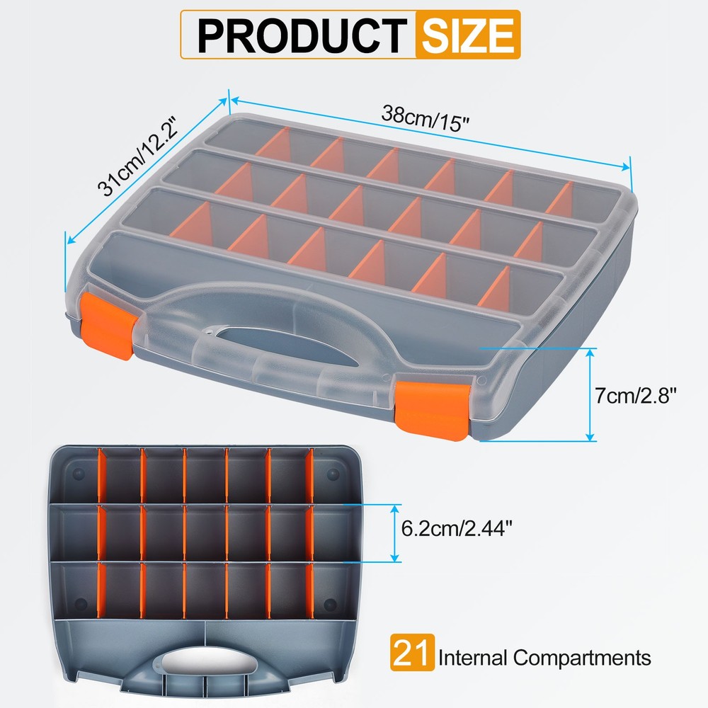 Document The tool box organizers are made of durable plastic material, which is reinforced and thickened, soft and not easy to break, and has good load-bearing capacity.The plastic storage box is equipped with a transparent cover, so you can quickly find the parts or hardware you need, and the internal compartments are removable and the position of the compartments can be adjusted according to the size of the items, suitable for personal or professional use.Two safety buckles are designed on the outside of the hardware toolbox, which can be easily opened or closed to prevent items from falling or being lost. The top carry handle makes it easy to carry and store in your garage, closet, shed, or vehicle.The hardware tool box can be used to store various small objects, fasteners, nuts, bolts, screws, handicrafts, small mechanical parts, DIY hobby items, etc. It can be used as a repair tool box, welding repair box, water pipe maintenance box, woodworking storage box, paint storage box, home appliance repair box, etc. Single Side Tool Organizer 15"x12.2"x2.8" 21-Compartment Tool Storage Box The tool box organizers are made of durable plastic material, which is reinforced and thickened, soft and not easy to break, and has good load-bearing capacity. The plastic storage box is equipped with a transparent cover, so you can quickly find the parts or hardware you need, and the internal compartments are removable and the position of the compartments can be adjusted according to the size of the items, suitable for personal or professional use. Two safety buckles are designed on the outside of the hardware toolbox, which can be easily opened or closed to prevent items from falling or being lost. The top carry handle makes it easy to carry and store in your garage, closet, shed, or vehicle. The hardware tool box can be used to store various small objects, fasteners, nuts, bolts, screws, handicrafts, small mechanical parts, DIY hobby items, etc. It can be used as a repair tool box, welding repair box, water pipe maintenance box, woodworking storage box, paint storage box, home appliance repair box, etc. Hot Item Payment 1.We accept eBay payment . 2.Payment must be received within 7 business days of auction closing. Shipping 1.We ship to your eBay or Paypal address. Please make sure your eBay and Paypal address is correct before you pay. 2.Items will be shipped within 1-3 business day when we received payment. 3.Delivery time depends on destination and other factors. Description Policy Single Side Tool Organizer 15"x12.2"x2.8" 21-Compartment Tool Storage Box The tool box organizers are made of durable plastic material, which is reinforced and thickened, soft and not easy to break, and has good load-bearing capacity. The plastic storage box is equipped with a transparent cover, so you can quickly find the parts or hardware you need, and the internal compartments are removable and the position of the compartments can be adjusted according to the size of the items, suitable for personal or professional use. Two safety buckles are designed on the outside of the hardware toolbox, which can be easily opened or closed to prevent items from falling or being lost. The top carry handle makes it easy to carry and store in your garage, closet, shed, or vehicle. The hardware tool box can be used to store various small objects, fasteners, nuts, bolts, screws, handicrafts, small mechanical parts, DIY hobby items, etc. It can be used as a repair tool box, welding repair box, water pipe maintenance box, woodworking storage box, paint storage box, home appliance repair box, etc. Hot Item Payment 1.We accept eBay payment . 2.Payment must be received within 7 business days of auction closing. Shipping 1.We ship to your eBay or Paypal address. Please make sure your eBay and Paypal address is correct before you pay. 2.Items will be shipped within 1-3 business day when we received payment. 3.Delivery time depends on destination and other factors.