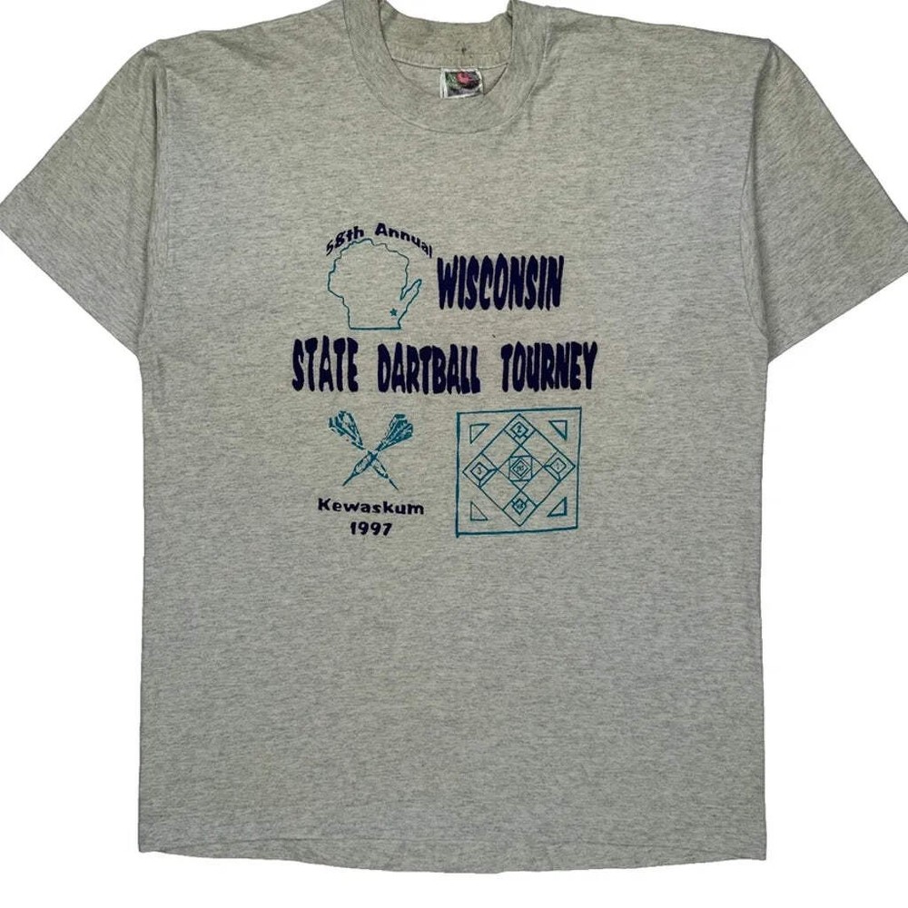 Single Stitch Fruit Of The Loom Graphic T-Shirt - Large Gray Cotton Blend Description: Fruit Of The Loom T-Shirt, fits Large.1997 Wisconsin State Dartball Tourney Graphic T-Shirt Gender: Mens Condition: Very Good Brand: Fruit Of The Loom Product Type: T-Shirt Era: 1990S Colour: Gray Fabric: Cotton BlendFit & Length: Neckline Type: Crew Neck Fit: Regular Fit Length: Regular Sleeve Type: Straight Sleeve Sleeve Length: Short SleeveExtra Attributes: Pattern: Plain Style: Casual Occasion: Casual Made In: Mexico Single Stitch Fruit Of The Loom Graphic T-Shirt - Large Gray Cotton Blend Description: Fruit Of The Loom T-Shirt, fits Large. 1997 Wisconsin State Dartball Tourney Graphic T-Shirt Gender: Mens Condition: Very Good Brand: Fruit Of The Loom Product Type: T-Shirt Era: 1990S Colour: Gray Fabric: Cotton Blend Fit & Length: Neckline Type: Crew Neck Fit: Regular Fit Length: Regular Sleeve Type: Straight Sleeve Sleeve Length: Short Sleeve Extra Attributes: Pattern: Plain Style: Casual Occasion: Casual Made In: Mexico × × × × × × × × Buy now and save! Shipping info Click the Shipping & Payments tab above the listing description for more info Click the Shipping & Payments tab above the listing description for more info! Additional delivery notes PICK UP OPTION Sorry, our items are NOT available for pick-up. PAYMENT Immediate payment is required upon selecting "Buy It Now" or upon checking out through the cart. We accept payment via U.S. PayPal accounts and all Major Credit Cards, Debit Cards & Google Pay. We are legally required to collect sales tax in those states and localities where we maintain a physical presence (nexus). The applicable amount of sales tax charged to an order will be calculated based on the shipment destination's state and local sales tax laws. Thank you for shopping with us on eBay! Additional Information No additional information at this time Ask seller a question You might also like Polo By Ralph Lauren Chino Shorts - 32W 10L Khaki Cotton 501 Levis Jeans - 30W 29L Gray Cotton 501 Levis Jeans - 32W 31L Blue Cotton Dickies Jacket - XL Navy Polyurethane Contact To contact our Customer Service Team, simply click the button here and our Customer Service team will be happy to assist. Ask seller a question © Thrifted.com Shipping & Payments Click the Shipping & Payments tab above the listing description for more info Payment Accepted Payment Methods Immediate payment is required upon selecting "Buy It Now" or upon checking out through the cart. We accept payment via U.S. PayPal accounts and all Major Credit Cards, Debit Cards & Google Pay. We are legally required to collect sales tax in those states and localities where we maintain a physical presence (nexus). The applicable amount of sales tax charged to an order will be calculated based on the shipment destination's state and local sales tax laws. Thank you for shopping with us on eBay! Returns Returns are accepted Items must be returned within 30 days of the auction ending Buyer will pay for return shipping. eBay integration by