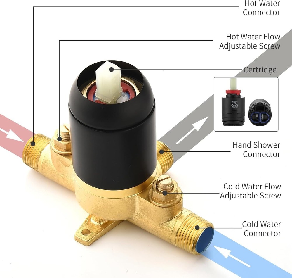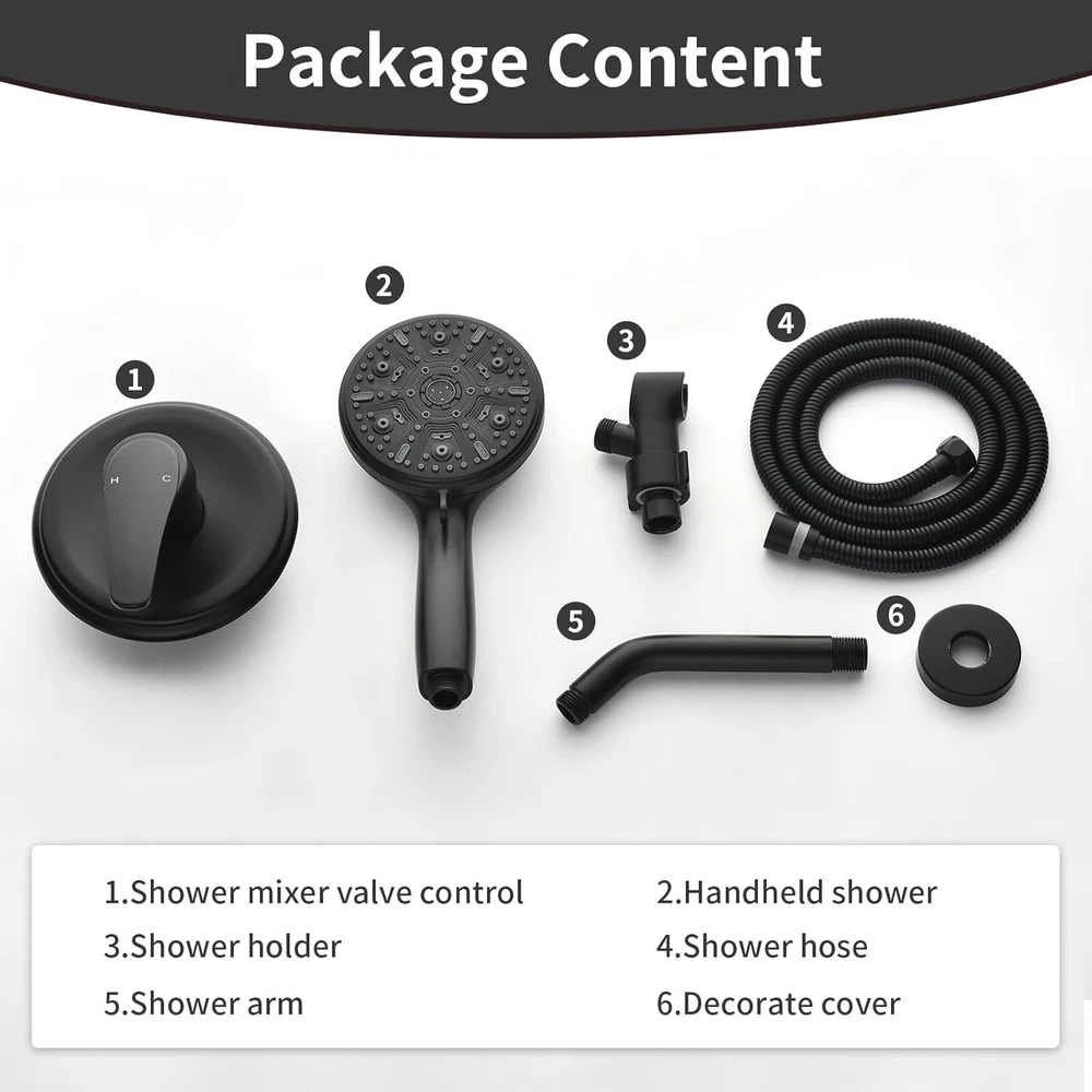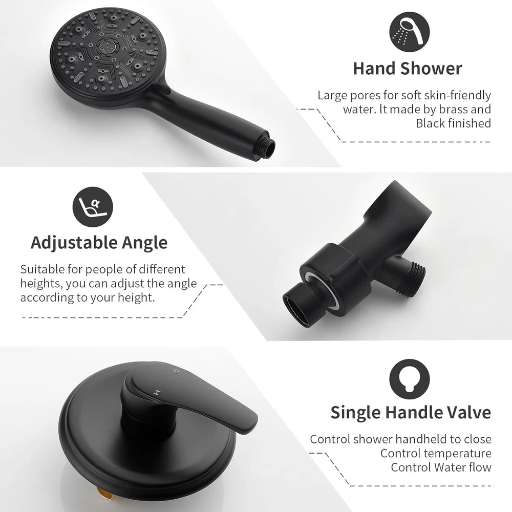 ➤【10 Modes Handheld Shower】- Black shower head and handle set has 10 water spray modes. It can be easily switched between by rotating the handle on the shower panel to suit your needs. The hand shower and the fixed shower can be used together or separately. ➤【Premium Quality】- The main body of matte black shower fixtures is made of high quality copper, sturdy and durable. The finish is colorfast, fingerprint resistant, rust resistant and corrosion resistant. Matte black shower faucet has a simple design that can match any style. ➤[Practical Design] - Single Handle Shower Faucet can be adjusted to the angle according to the needs of family members, so that you have a pleasant bathing experience! IMPORTANT WARNING:Not compatible with other brand valve and cartridges.The old shower valve must be removed if install this. ➤【Prevent Water Hammer】- Single Handle Shower Trim Kit has an internal shut-off valve that allows for a quiet and comfortable bathing environment. The pressure balancing valve offer you to have a suitable temperature without the risk of burns or cold shocks. Bring happiness to your home with the Shower Faucet Set with 10 Functions Handheld!