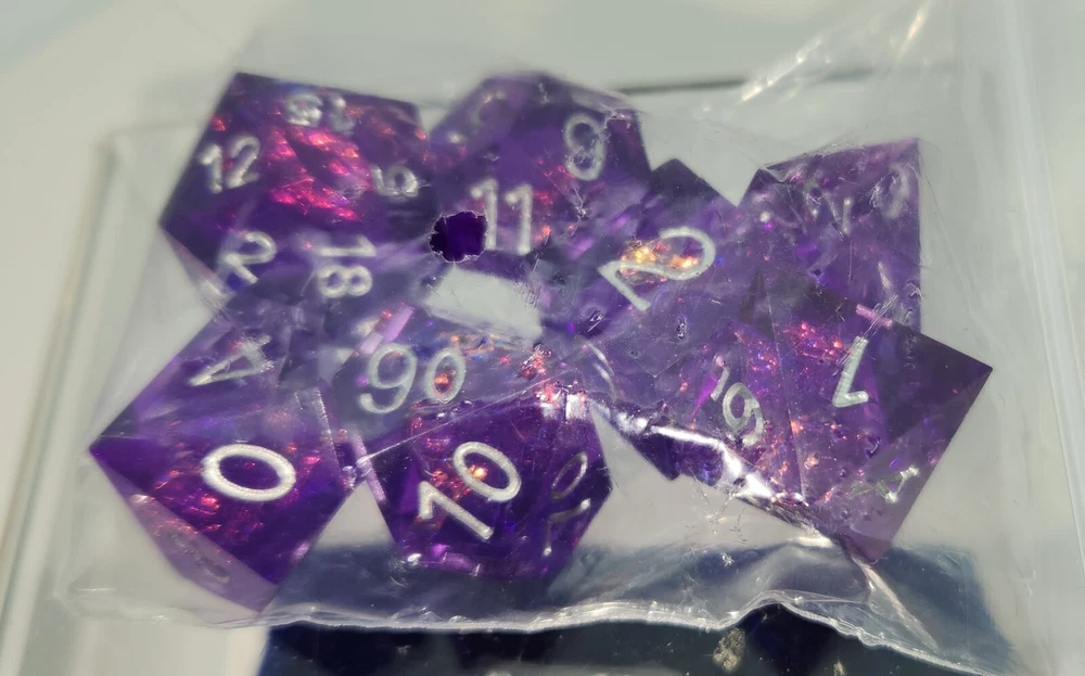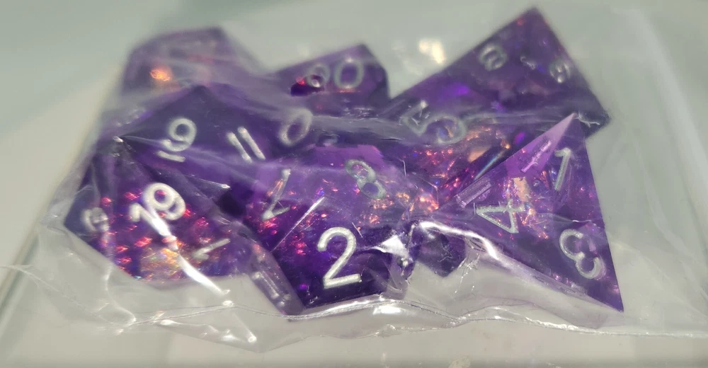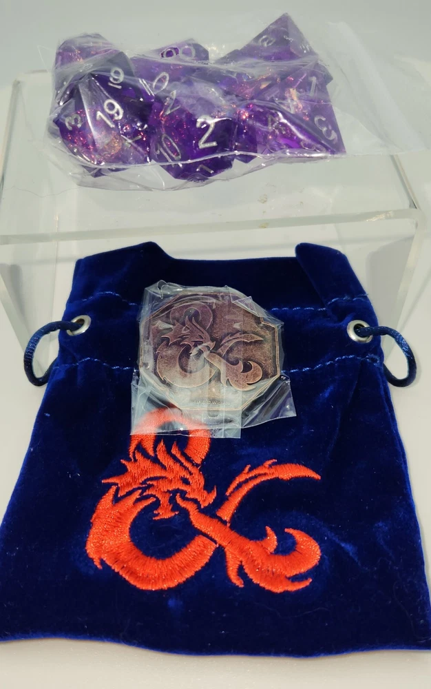 Opened blind bag Sirius Dungeons and Dragons Acrerak's Treasure Crystal edition dice, bag and token. This is a RARE 1 in 25 dice set, Sharp Purple Fairy. Includes a blue velvet bag with red D&D logo embroidery and a bronze D6 bardic Inspiration coin. Opened to see which set I got; dice and coin left in factory baggie, never removed. Never on display, stored in a smoke free home. I ship all items with extreme care in the most efficient packing possible to keep your items safe without increasing postage costs. I know the pain of getting an item in the mail crushed to a pulp--I do as much as possible to prevent that from happening! Happy to combine shipping when possible! Ships same or next day. Check all postage options for the one that best fits your needs! Postage has skyrocketed recently, so I do what I can to find the most affordable shipping options. International shipping is handled by Ebay's Standard International shipping program--I have no input on that at all, so I am unable to offer any other shipping options for international buyers. If your country is not listed as available for purchase on this item, that means there is some shipping restriction and I cannot sell it to you, very sorry about that.