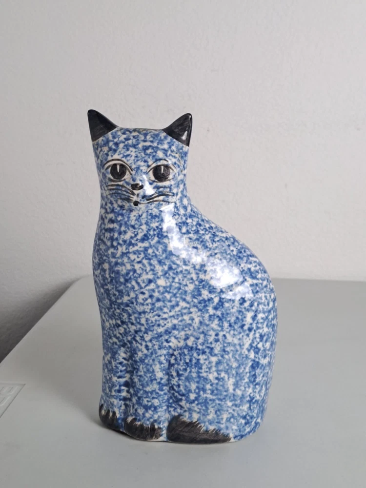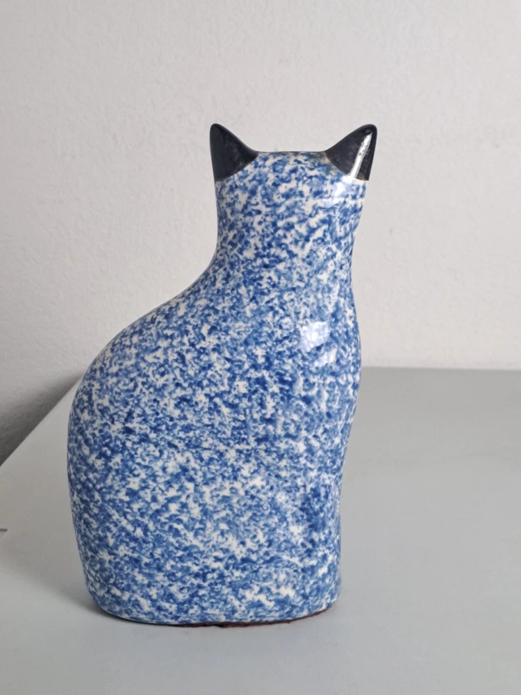 Sitting Cat Glazed Ceramic Porcelain Blue/ White 8.5" Tall Statue Figure Decor is in Good Pre-Owned Condition. Heavier Weight Piece. Nice!!