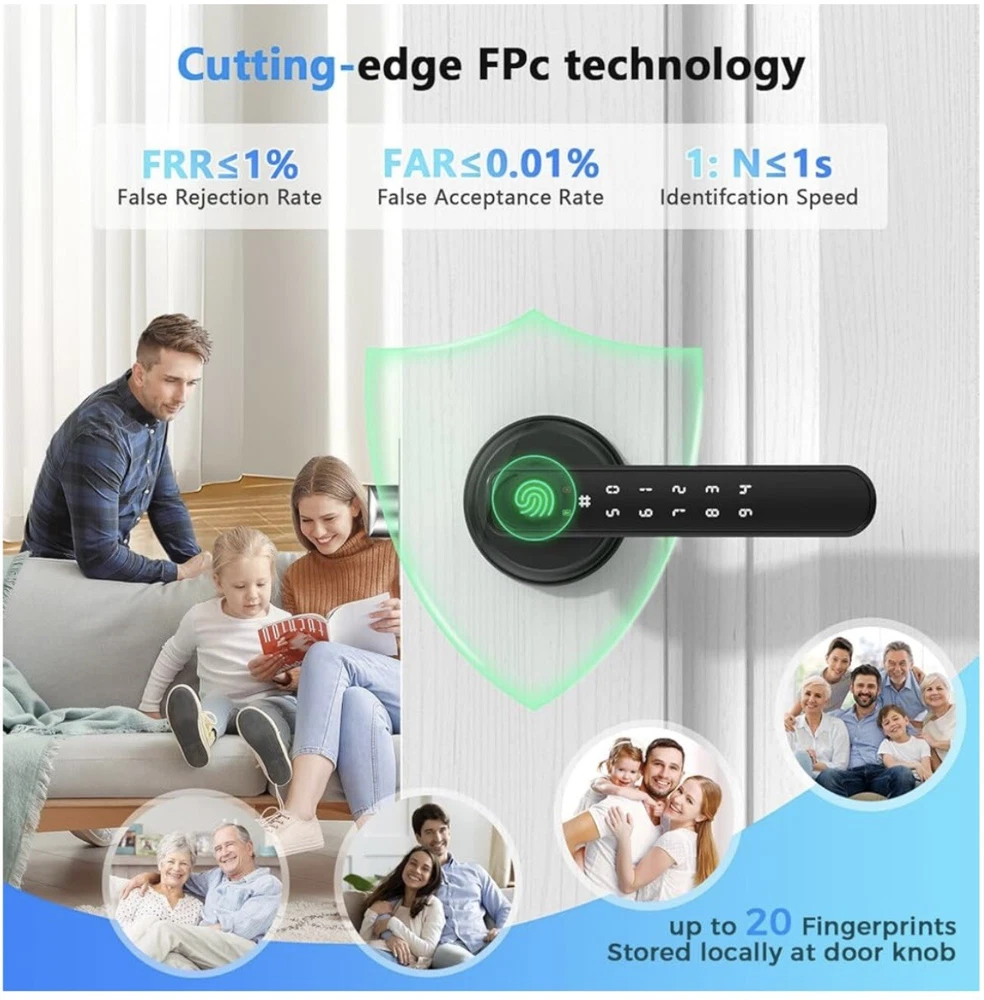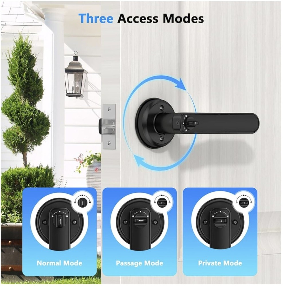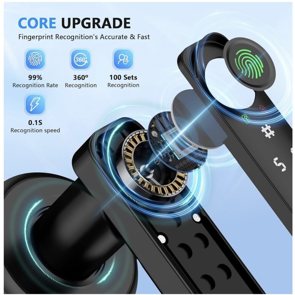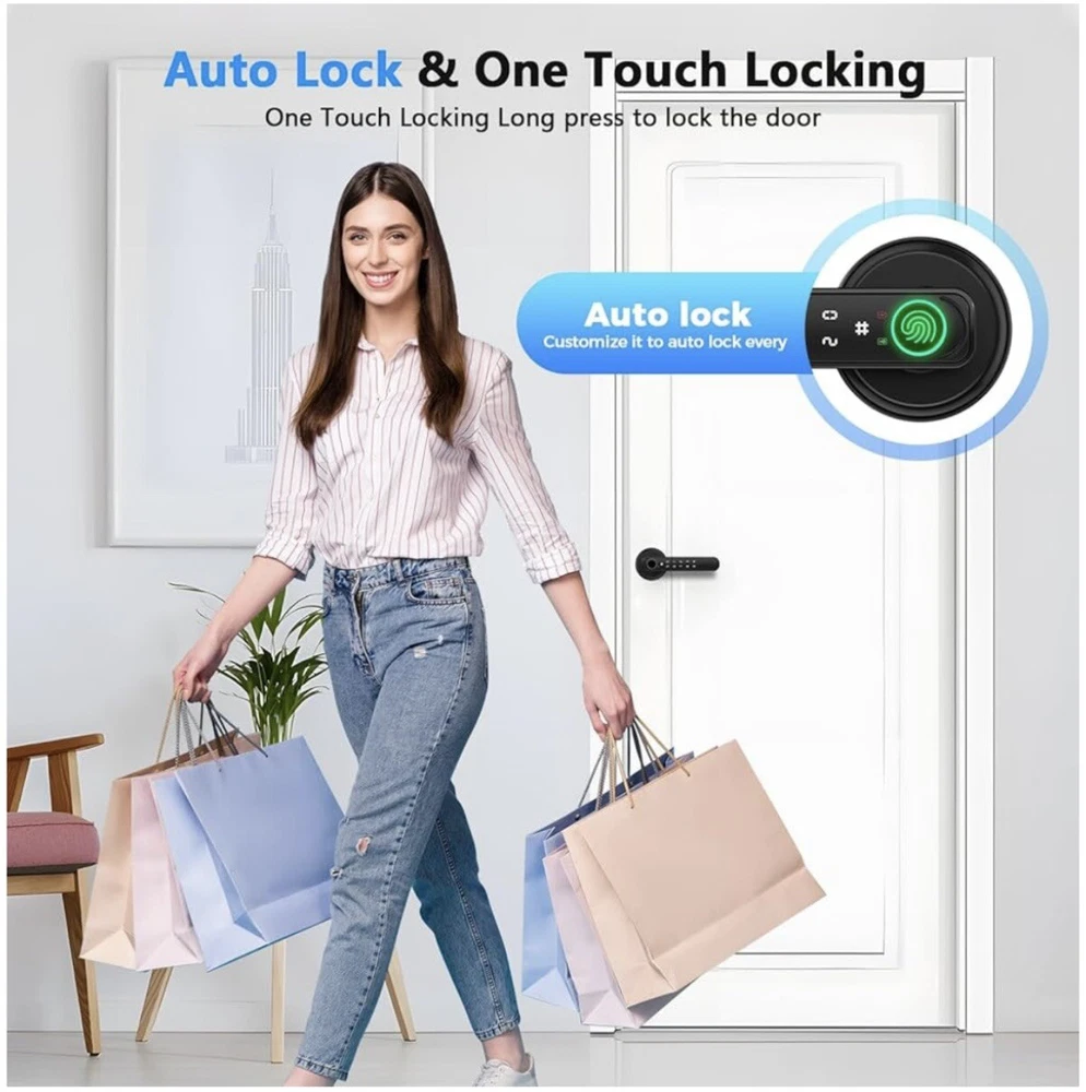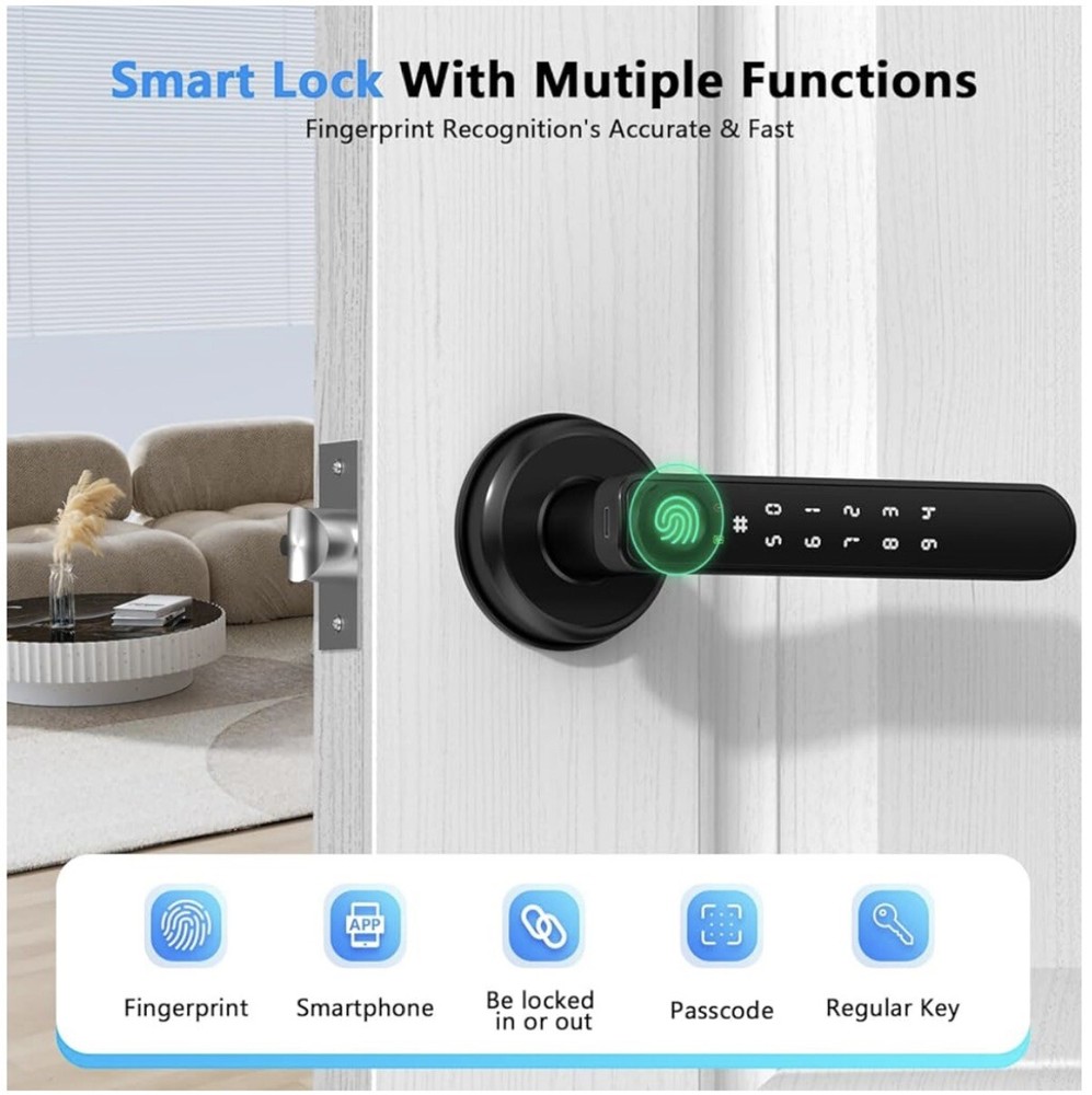 Keyless Entry : Unlock your door with fingerprint, code, or smartphone app for maximum convenience and security.Up to 50 fingerprints and 50 sets of passwords can be stored at the door handle. Unlock quickly in one second, with a recognition rate of up to 99% Versatile Design : This smart lock can perfectly adapt to most standard doors and handles. Whether it's enhancing the security of your home, upgrading your office access system, or adding a modern touch to hotel rooms, this smart lock is the perfect choice. App Control : Manage access permissions, view entry logs, and control settings remotely via the companion app, And you can set a temporary password on the app to share with your friends or visitors. Security Protection : Sturdy zinc alloy body ensures long-lasting performance and protection for your home or office.The door lock has an automatic locking function, preventing the situation of forgetting to lock the door due to rushing to leave. Anti-Peep Door Code, prevent peeping, protect your password security. Easy Installation : Without professional assistance, simply follow the steps in the product manual and use a screwdriver to quickly replace existing locks without any wiring or permanent modifications. The simple installation process provides users with a convenient experience(The battery needs to be purchased separately by the buyer).
