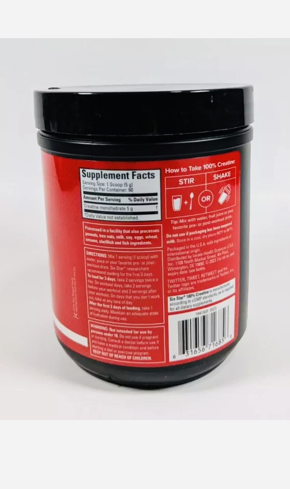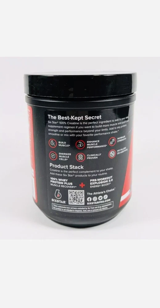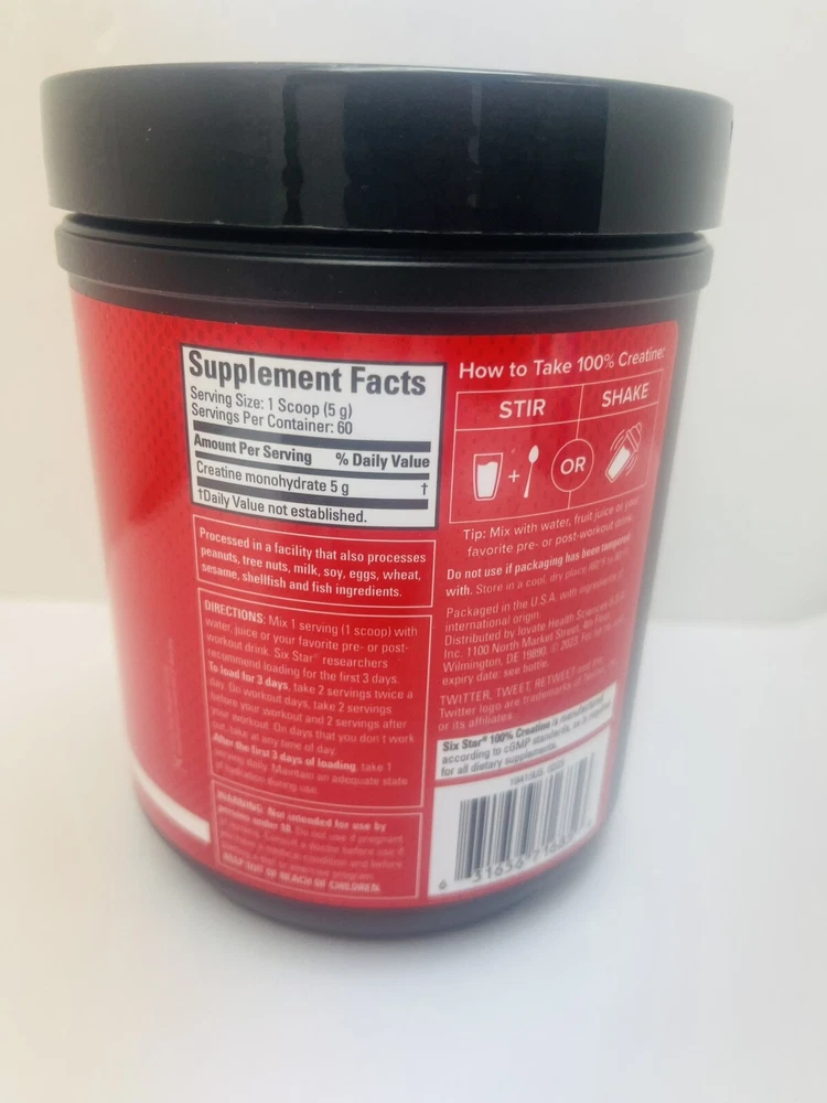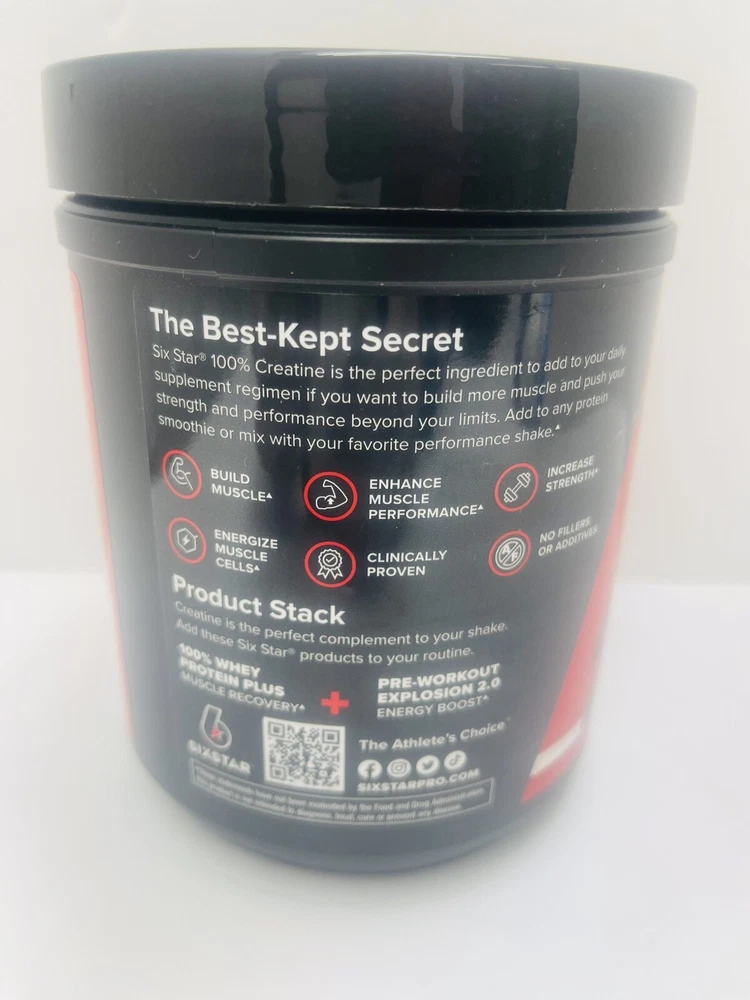 Six Star Creatine Unflavored 10.58 Oz Exp 12/25. Builds muscle, increases strength & improves performance 60 servings Invnt brrnb103x