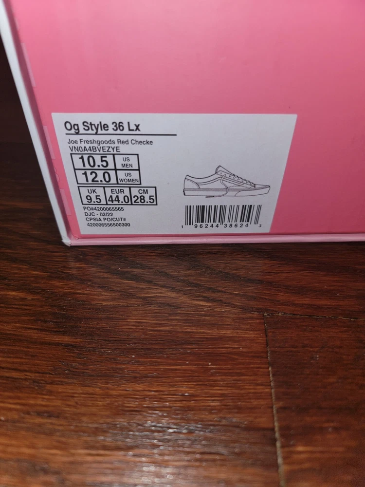Color: Red Release Year: 2022 Manufacturer Color: Red/Marshmallow Model: VANS Style 36 Upper Material: Suede Style Code: VN0A4BVEZYE Product Line: VANS Style Release Date: 20220715 Brand: VANS Full Model: VANS Joe Freshgoods x OG Style 36 LX Type: Athletic Style: Sneaker Department: Men US Shoe Size: 10.5 Nickname: Honeymoon Stage - Red