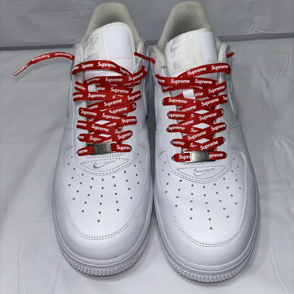 The manufacturer color is white, and the style code is CU9225-100. These shoes are part of the Nike Air Force product line, and they were released in 2020. Perfect for any athletic occasion, these sneakers are sure to turn heads. The box is the original one with the Supreme logo. They are very comfortable to use for everyday life. As used still in good condition, needs a little fresh up to bright again even more 😊 Please before purchasing feel free to reach out to us for any questions or to post more pictures.