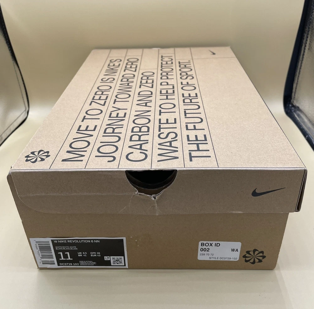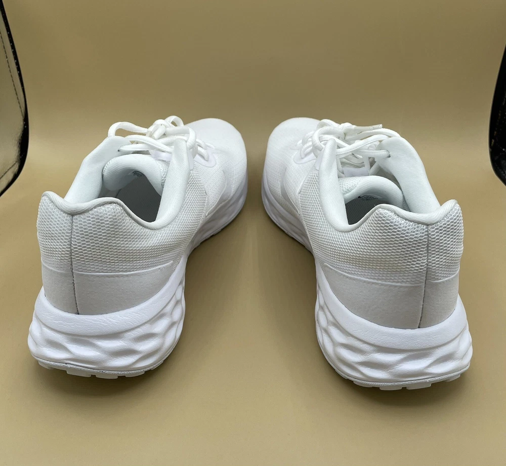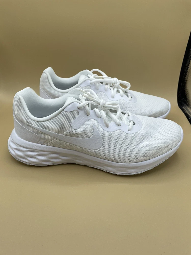Elevate your running game with these Nike Revolution 6 NN sneakers. The shoes come in a classic white colorway with accents of the Nike logo. They feature a lace-up closure for a secure fit and a low-top shoe shaft style. These shoes are perfect for running and jogging, with a cushioned, comfortable, and breathable design. The rubber outsole provides traction and durability, while the foam insole adds extra comfort. The Nike Revolution 6 NN sneakers are ideal for women who are looking for a stylish and functional shoe that can be worn for activewear, casual wear, and workwear.