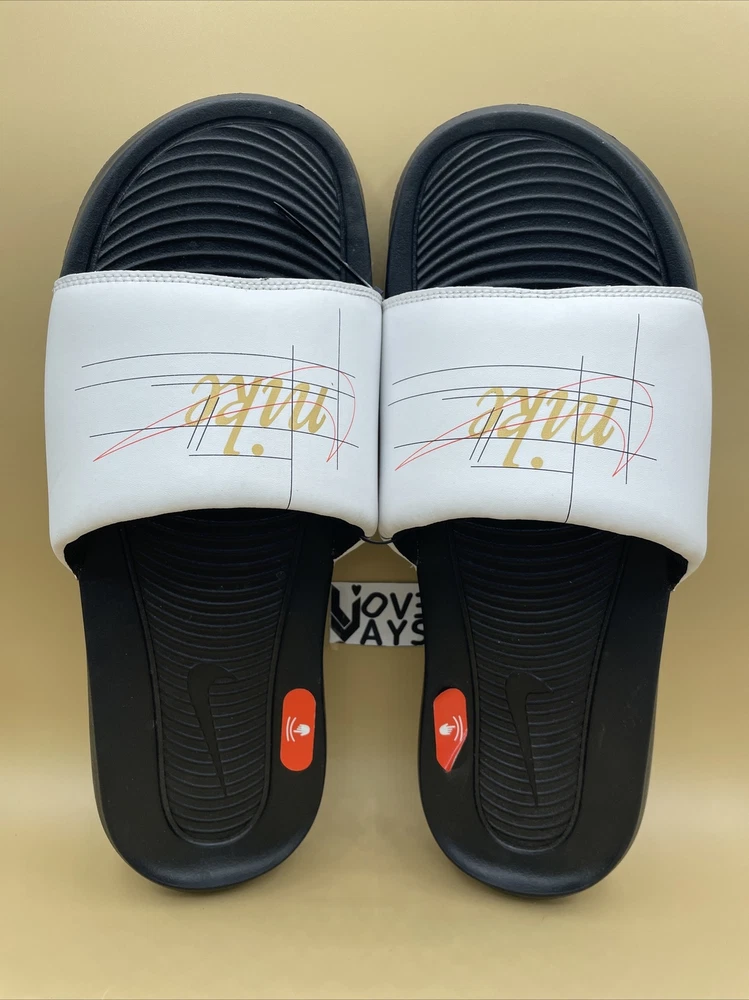 Size 14 NIKE MENS VICTORI ONE SLIDE PRINT WHITE/GOLD BLACK Brand New!!!.