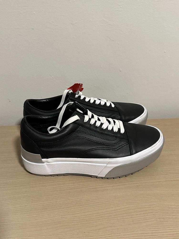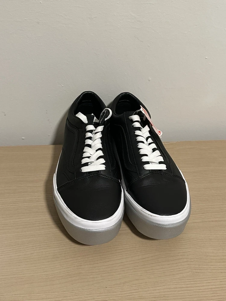Elevate your sneaker game with these VANS Old Skool stacked shiny shoes. Crafted with high-quality leather and designed with a sleek black color, these shoes are perfect for the fashion-forward man. The athletic style and comfortable fit make them ideal for any occasion, whether you're hitting the skate park or running errands. Featuring the VANS Old Skool model and style code VN0A4U159IW, these sneakers are a must-have for any VANS enthusiast. Don't miss out on the chance to add these stylish sneakers to your collection. Please keep in mind item is pre-loved.