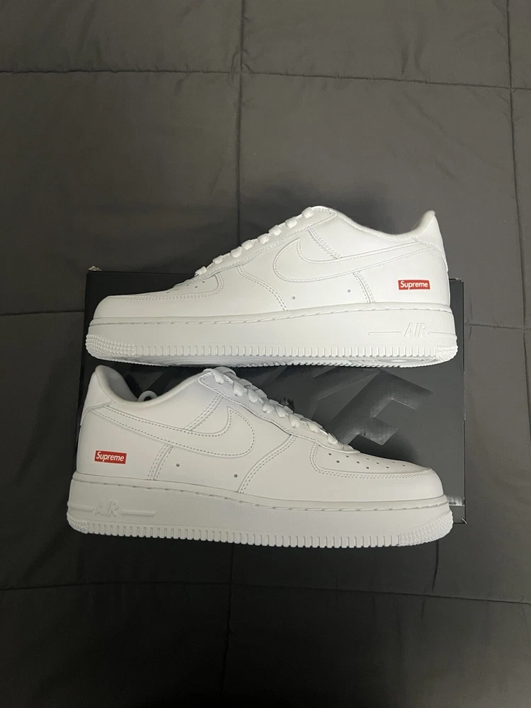 Brand new Size 8 - Nike Air Force 1 x Supreme Low Box Logo - White og everything. Price is a little negotiable. Message me if you have any questions🙂.