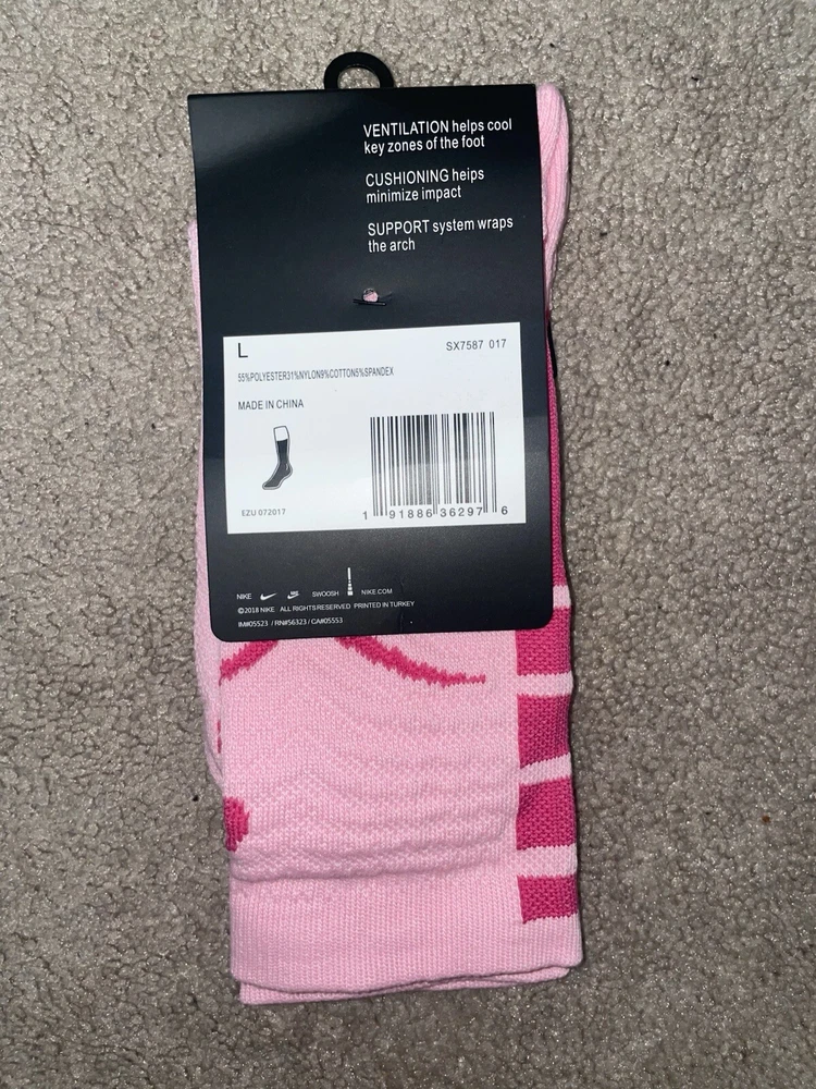Size 8-12-Nike Elite DriFit NBA Kay Yow Give Strength Basketball Crew Socks Pink