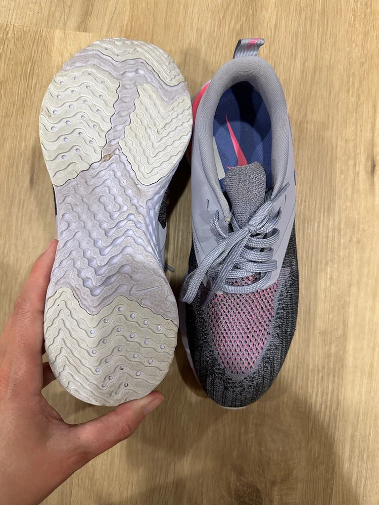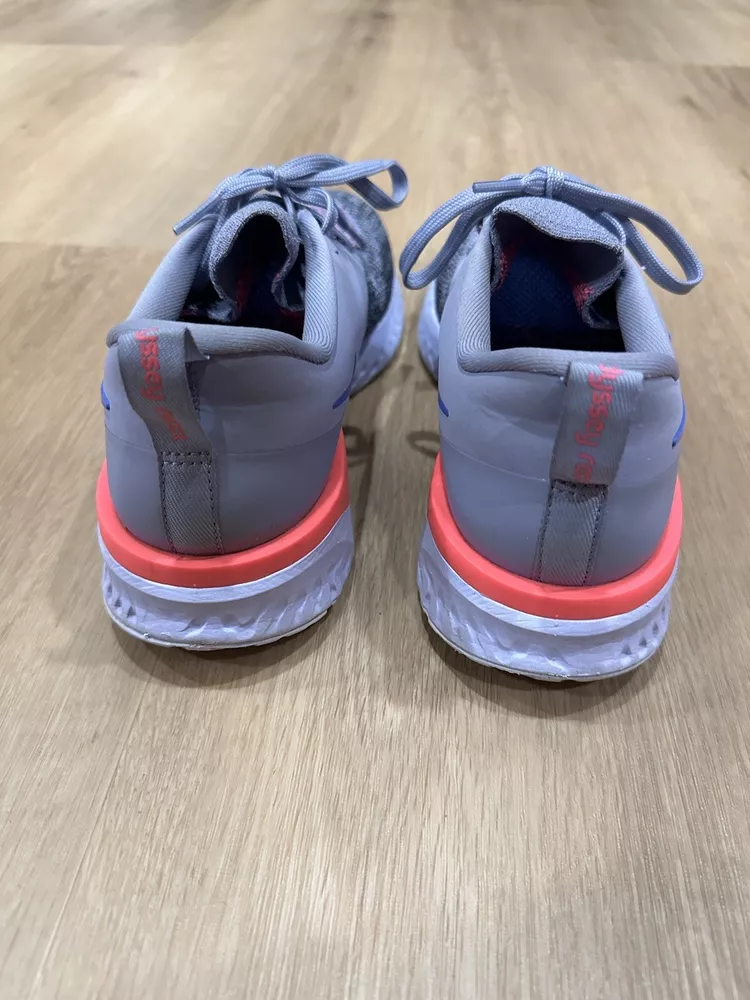 Elevate your activewear game with these Nike Odyssey React Flyknit 2 sneakers in a beautiful indigo haze and black colorway. Designed for women, these sneakers feature a lace-up closure and a low-top shoe shaft style. The upper material is made of breathable mesh and adorned with Nike's signature logo accents. These sneakers are perfect for gym and training, cross-training, and running and jogging. They were manufactured in Vietnam in 2018 and are part of the Nike Odyssey React product line. The cushioned, comfortable, and breathable features make them ideal for any season, be it winter, summer, fall, or spring. Get yourself a pair of these colorful and stylish sneakers today!