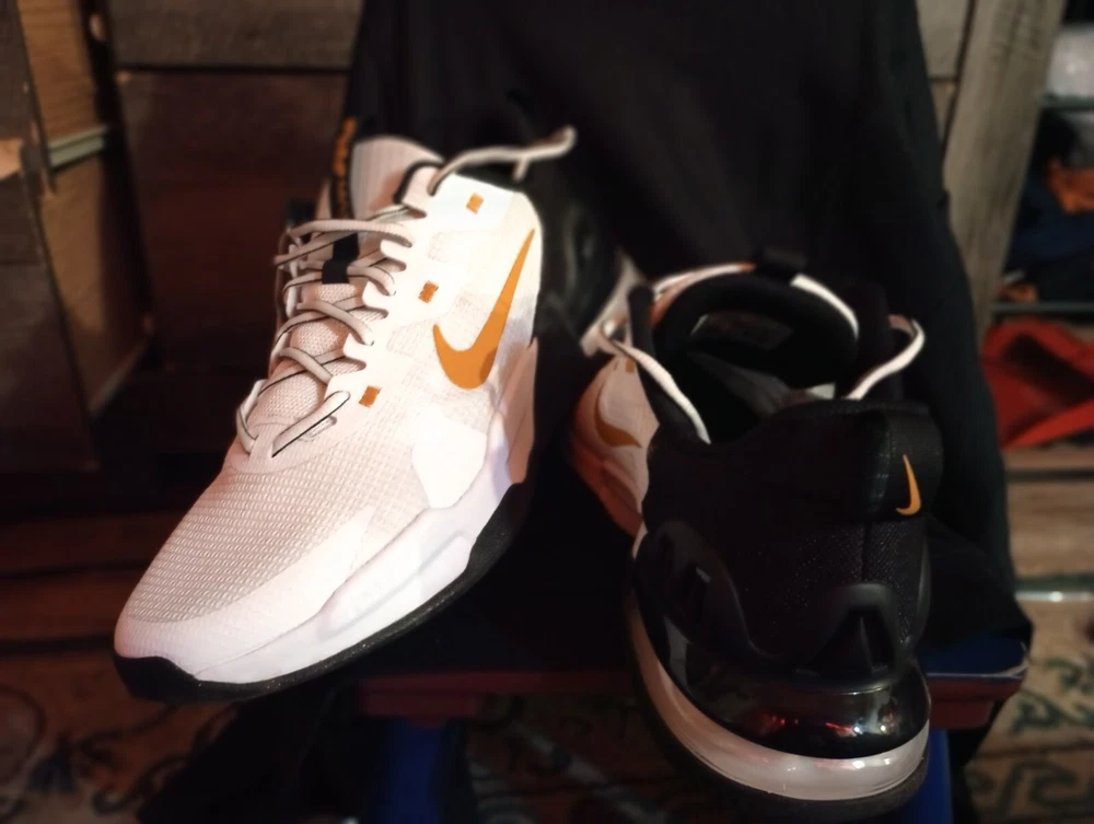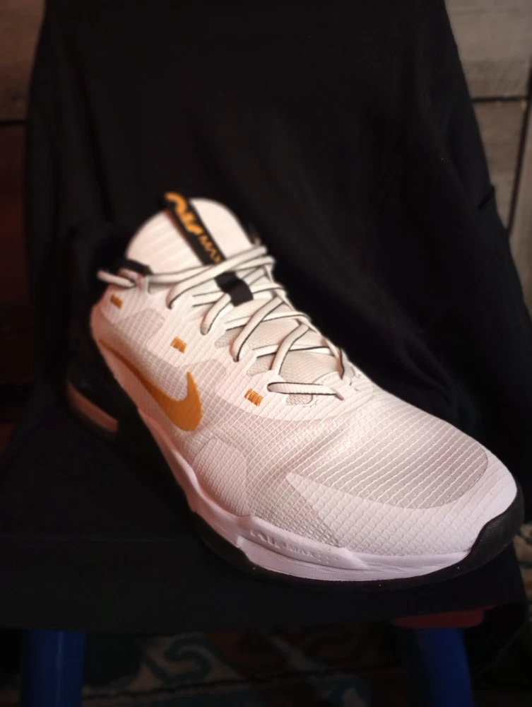 Elevate your athletic game with these Nike Air Max Alpha Trainer 5 sneakers in a classic white and gold colorway. These sneakers are designed for men and feature a mesh upper material, making them perfect for any season. The Nike Air Max Alpha model is a must-have for any sneaker enthusiast.These sneakers are perfect for any athletic activity, whether you're hitting the gym or going for a run. The Nike Air Max product line is known for its comfort and support, making these sneakers a great choice for any athlete. Don't miss out on the chance to add these stylish and functional sneakers to your collection.