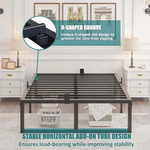 Metal Bed Frame,Size Bed Frame with Storage Space,Heavy Duty Queen 14 Inch